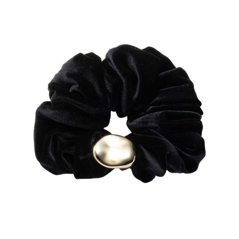 光沢感のあるベロア生地にゴールドメタルが艶めくシュシュ。ニュアンスたっぷりな雰囲気に仕上げたメタルがアレンジをグッとオシャレな雰囲気に◎大人に似合うシックなカラーとサッと装着できるシュシュで普段使いしやすいアイテムです。