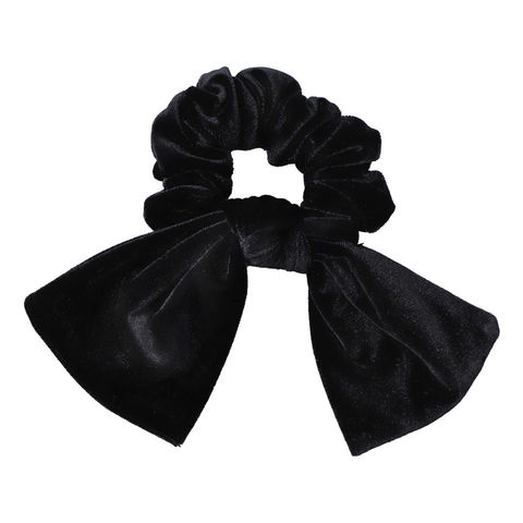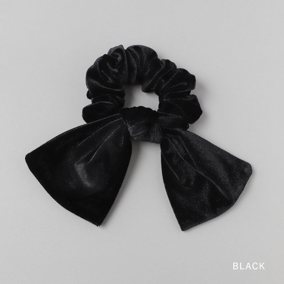 ヘアアクセサリー レディース シュシュ ヘアゴム リボン ベロア ベルベット スクエア ボリューム 大きめ 調整可能 微光沢 髪留め まとめ髪 ワイン cream dot ゆうパケット [ブラック_ワンサイズ]