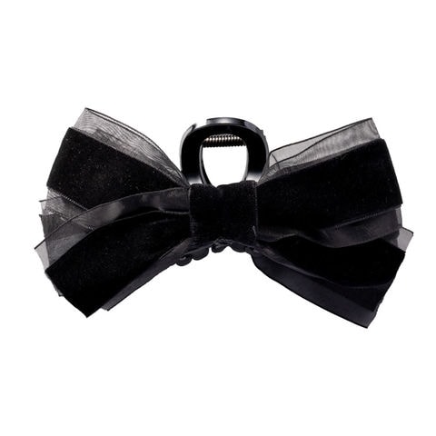 ベロアとオーガンジー素材の重なりが大人可愛いリボンヘアクリップ。シックなカラーと異素材の組み合わせが抜群にマッチしたひと品。これひとつでアレンジをグッと今っぽくしてくれるおススメのアテムです。