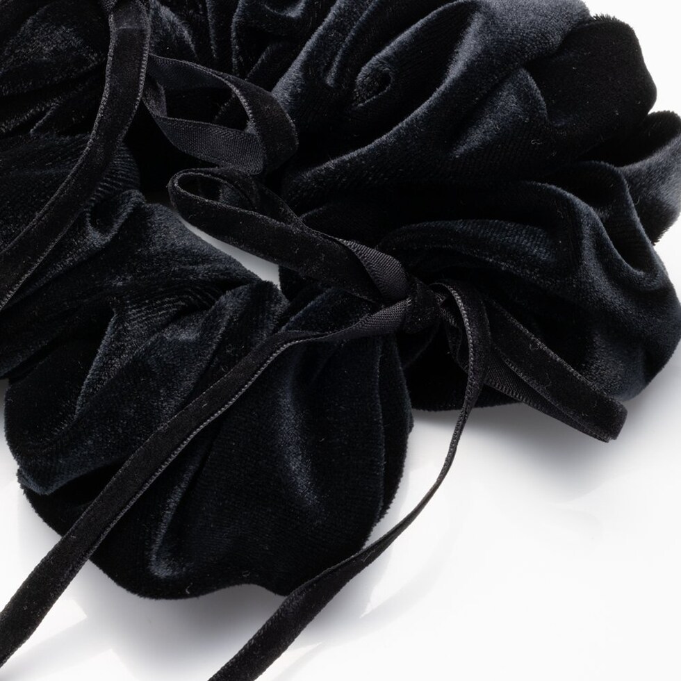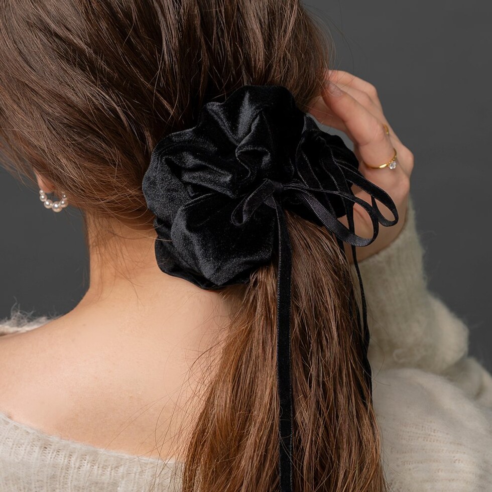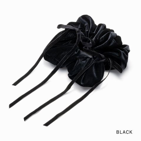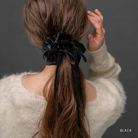 ヘアアクセサリー レディース シュシュ ベロア ベルベット リボンコード ロング 微光沢 ボリューム 大きめ 存在感 ヘアゴム 髪留め まとめ髪 アレンジ cream dot ゆうパケット [ブラック_ワンサイズ]