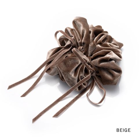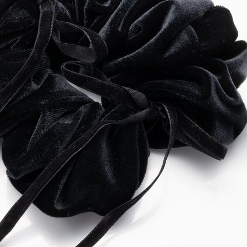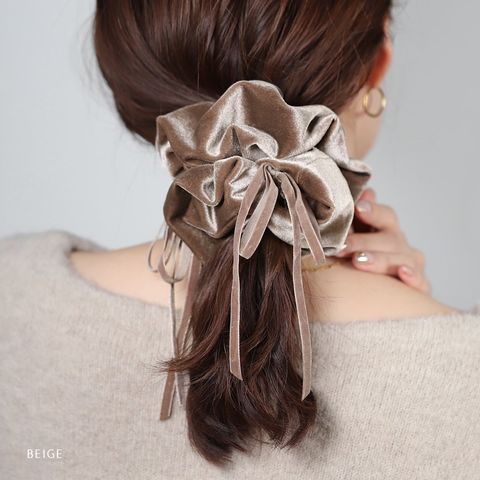 微光沢のベロアとリボンコードがこなれた印象のシュシュ。大人に似合うシックなカラーとラフに垂れたリボンが甘すぎず洒落感たっぷりな仕上がりに。大きめのサイジングでサッと着けるだけで映える後ろ姿が完成するオススメのひと品です。しっかりとした生地感もポイント◎