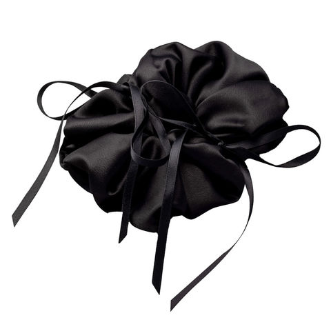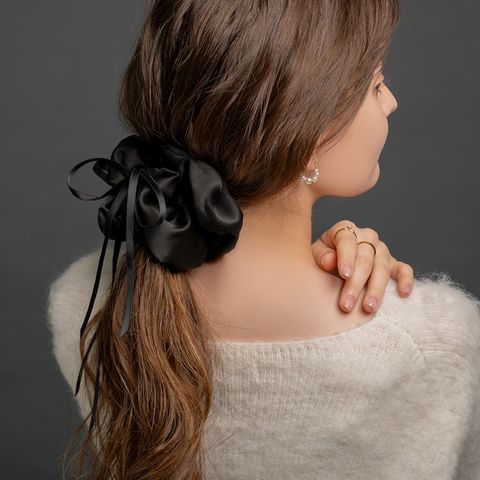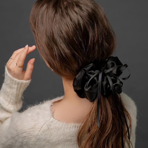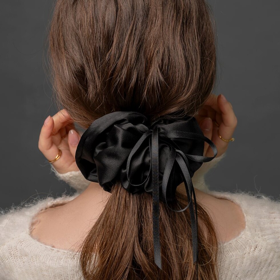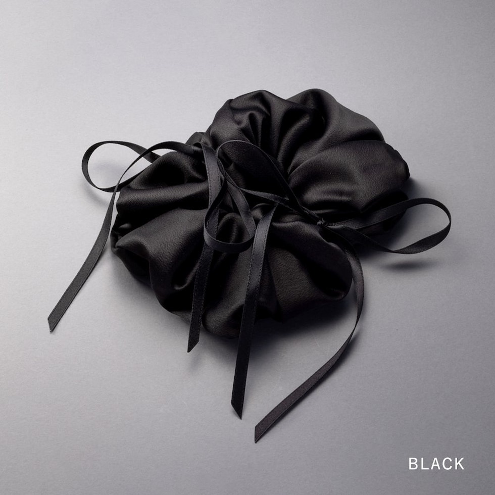 ヘアアクセサリー レディース シュシュ サテン調 リボンコード ロング 微光沢 ボリューム 大きめ 存在感 ヘアゴム 髪留め まとめ髪 アレンジ cream dot ゆうパケット [ブラック_ワンサイズ]