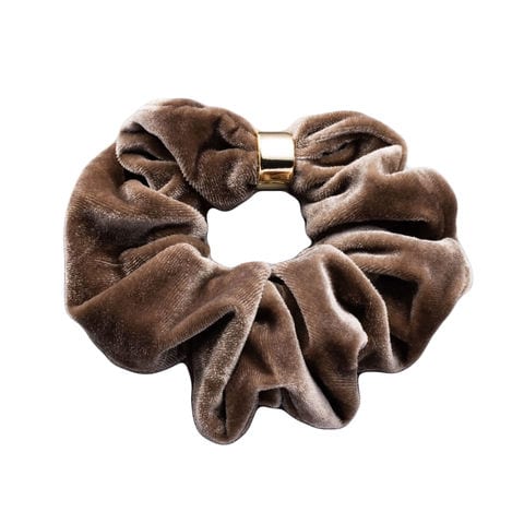 メタルリングがデザインにアクセントを添えるベロア シュシュ。エレガントでスタイリッシュなベロア素材がヘアスタイルをグッと格上げしてくれるひと品。見た目だけでなく手触りも柔らかく心地よいシーズンライクなアイテムです。