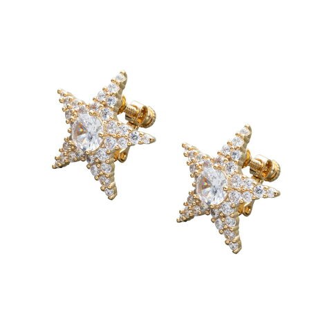 大きめビジューとたくさんの小粒ビジューを散りばめたスターモチーフのピアス/イヤリング。ビジューをふんだんに使用したスターモチーフのラグジュアリーな輝きが存在感バツグンな逸品。低アレルギーのニッケルフリー素材を使用しているので、長時間の着用も安心です。