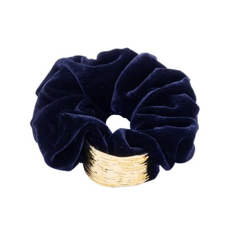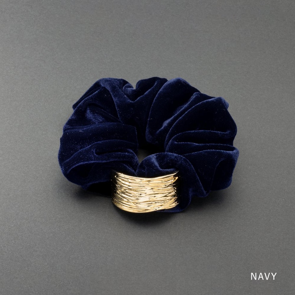 ヘアアクセサリー レディース シュシュ ヘアゴム ベロア ベルベット メタル 凹凸加工 スクエア ボリューム 大きめ 存在感 髪留め まとめ髪 光沢感 ネイビー cream dot ゆうパケット [ネイビー_ワンサイズ]