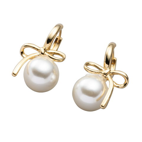 ピアス 金属アレルギー ニッケルフリー レディース フープ パール リボン アシンメトリー 立体的 中折れ キャッチレス 開閉式 cream dot ゆうパケット [ゴールド_ピアス]