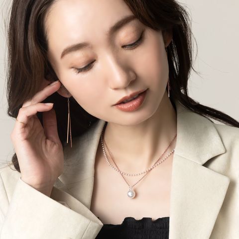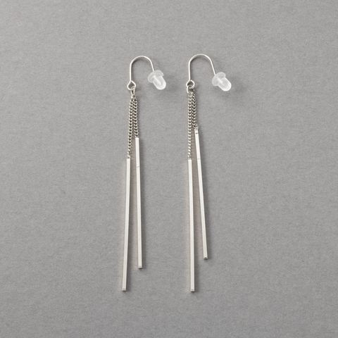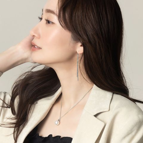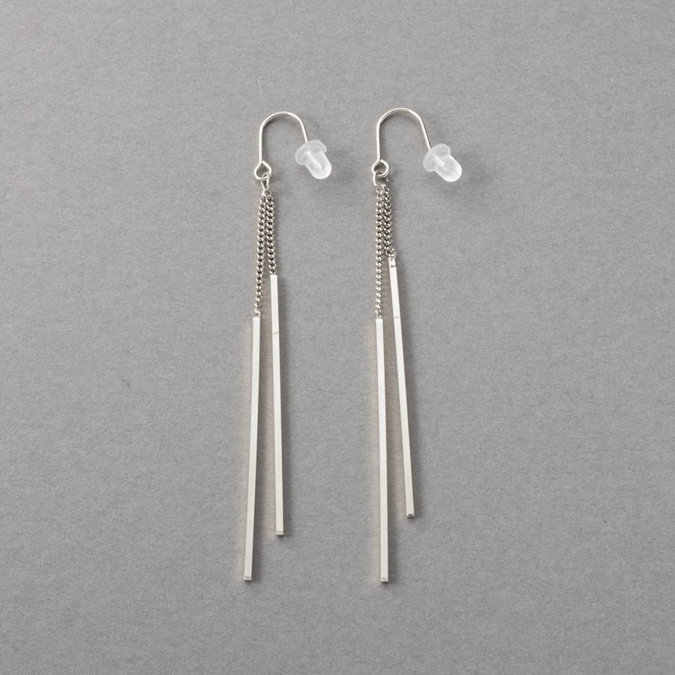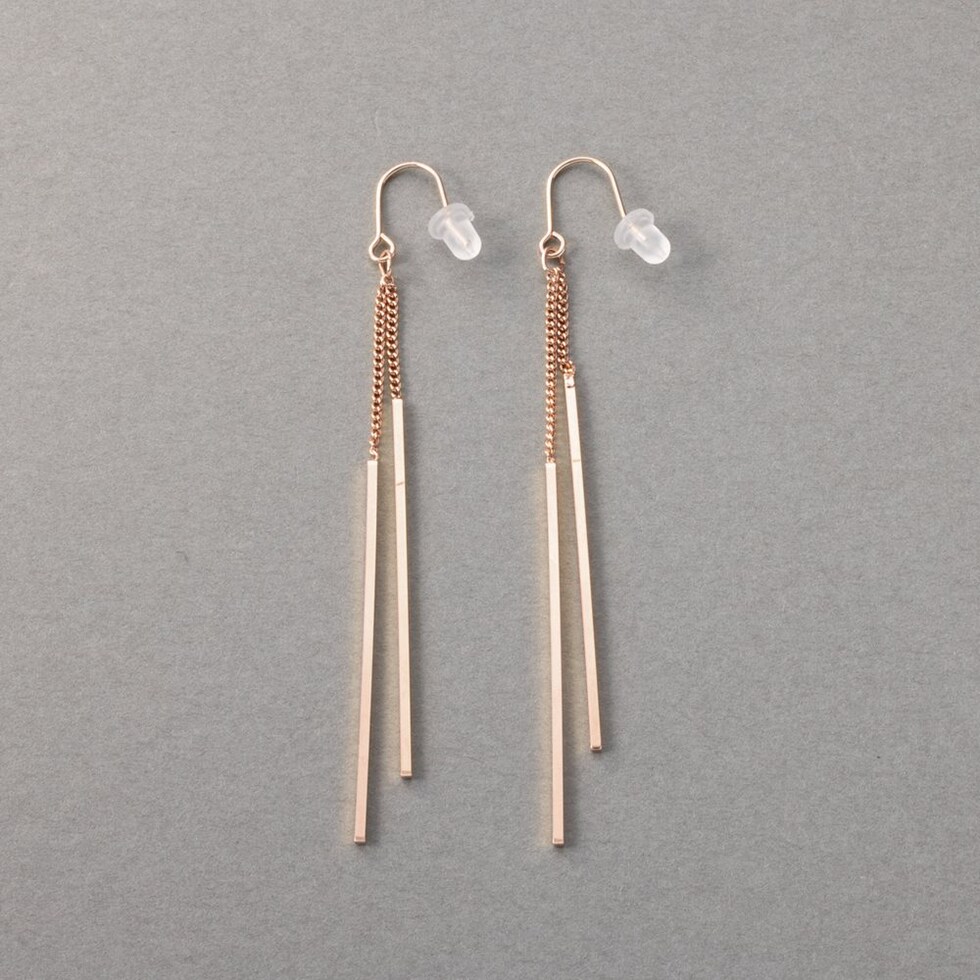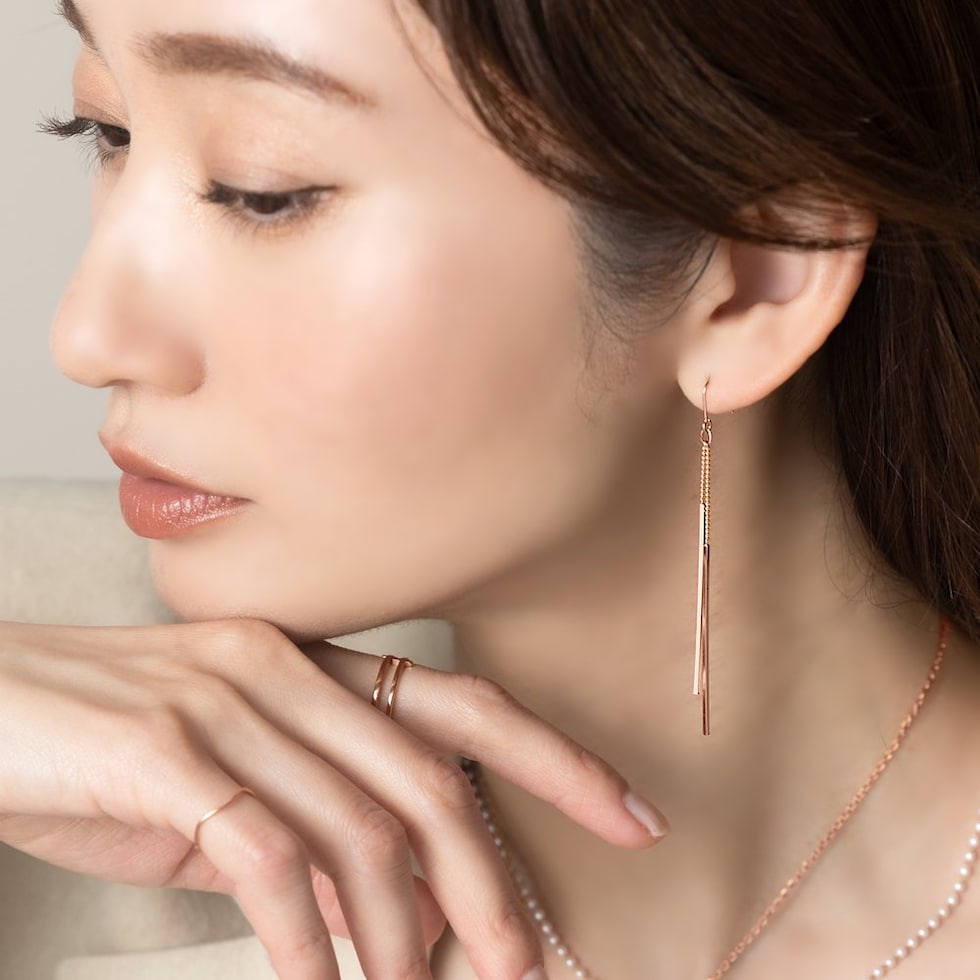 華奢チェーンの先でダブルのスクエアバーが揺らめくピアス/イヤリング。イヤリングには煌めくビジューを配したこだわりのデザイン。スマートで程よい華やかさをプラスしてくれる大人の女性にぴったりなひと品◎