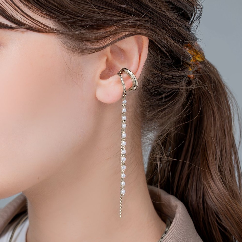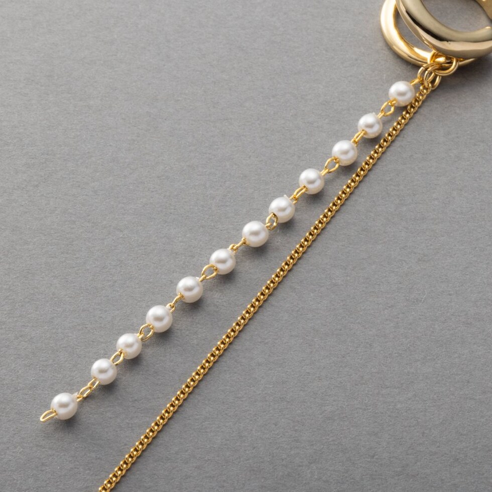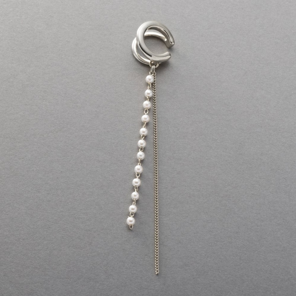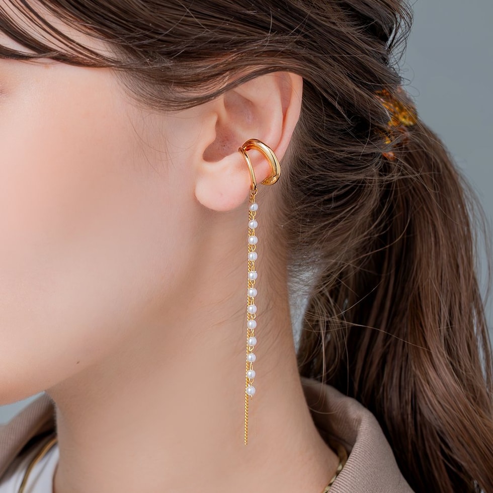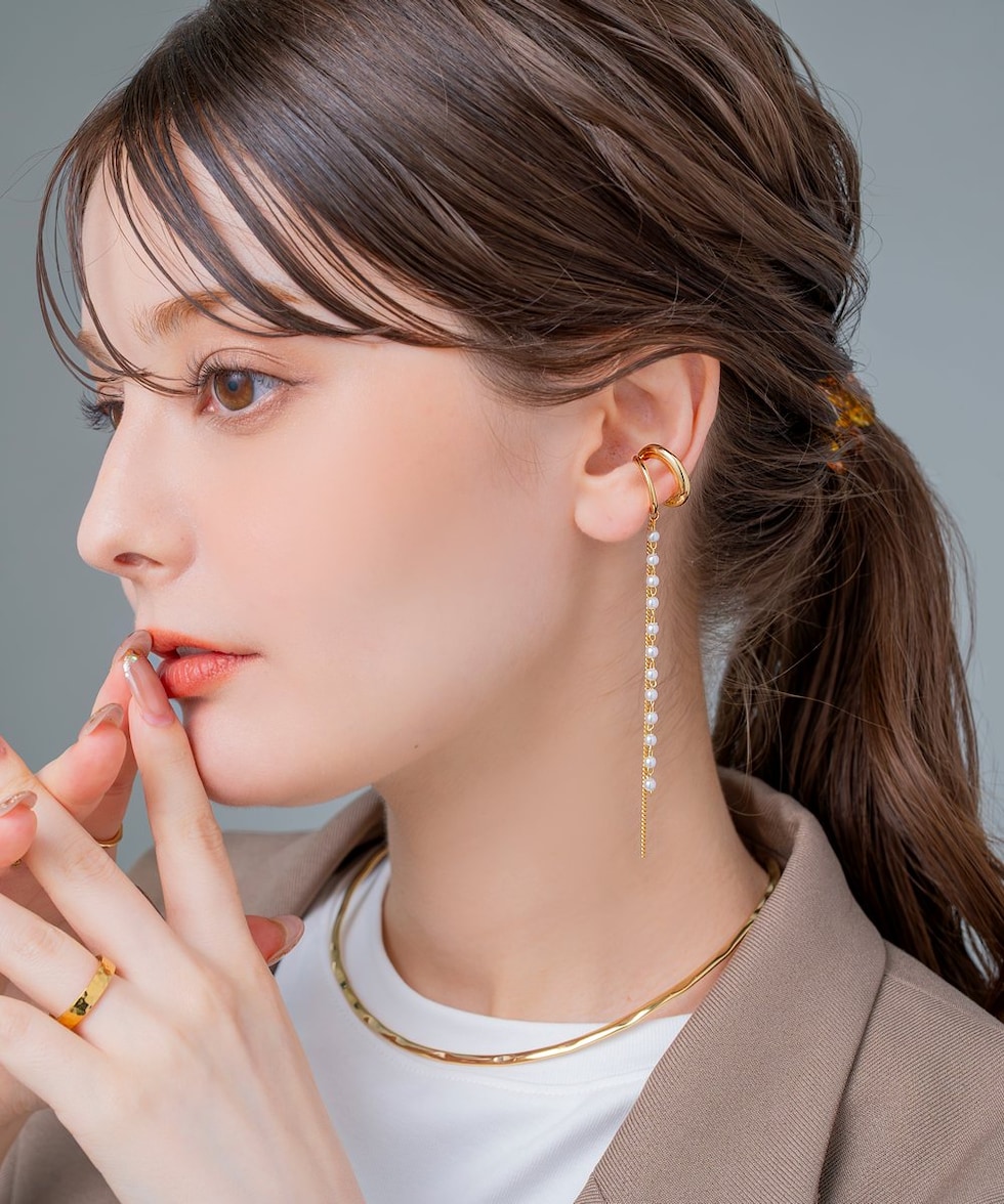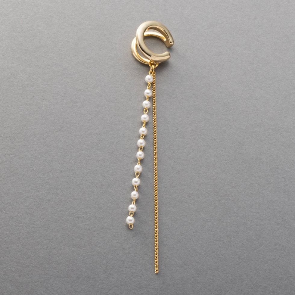 華奢&パールチェーンの片耳用イヤーカフ。小粒なパールが品よく艶めき、レイヤードしているように見える技ありデザインで周りと差のつくアイテム◎軽やかな揺れ感が気分まで上げてくれるひと品。