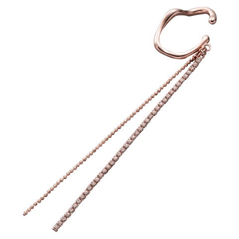 ビジュー&華奢チェーンの片耳用イヤーカフ。小粒なビジューチェーンが品よく煌めき、繊細な技ありデザインで周りと差のつくアイテム◎軽やかな揺れ感が気分まで上げてくれるひと品。