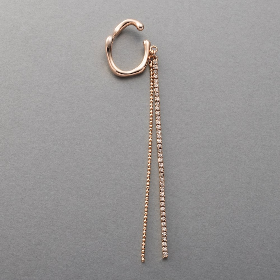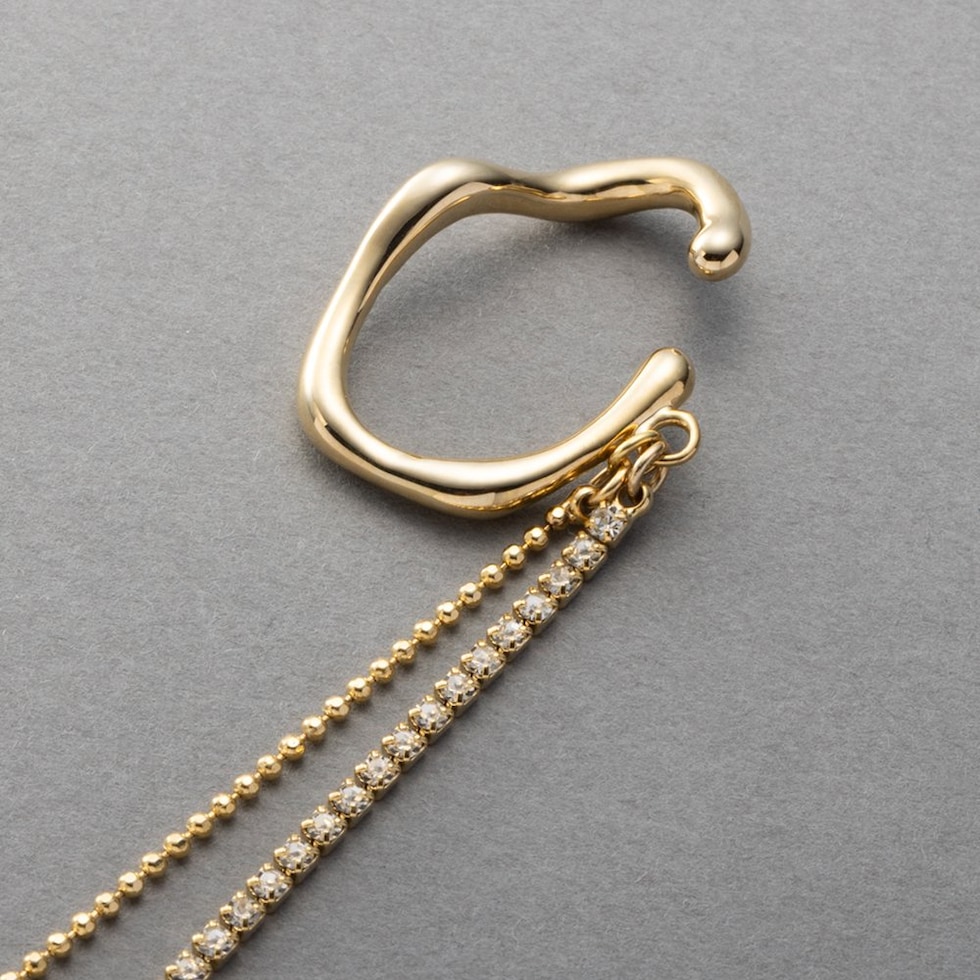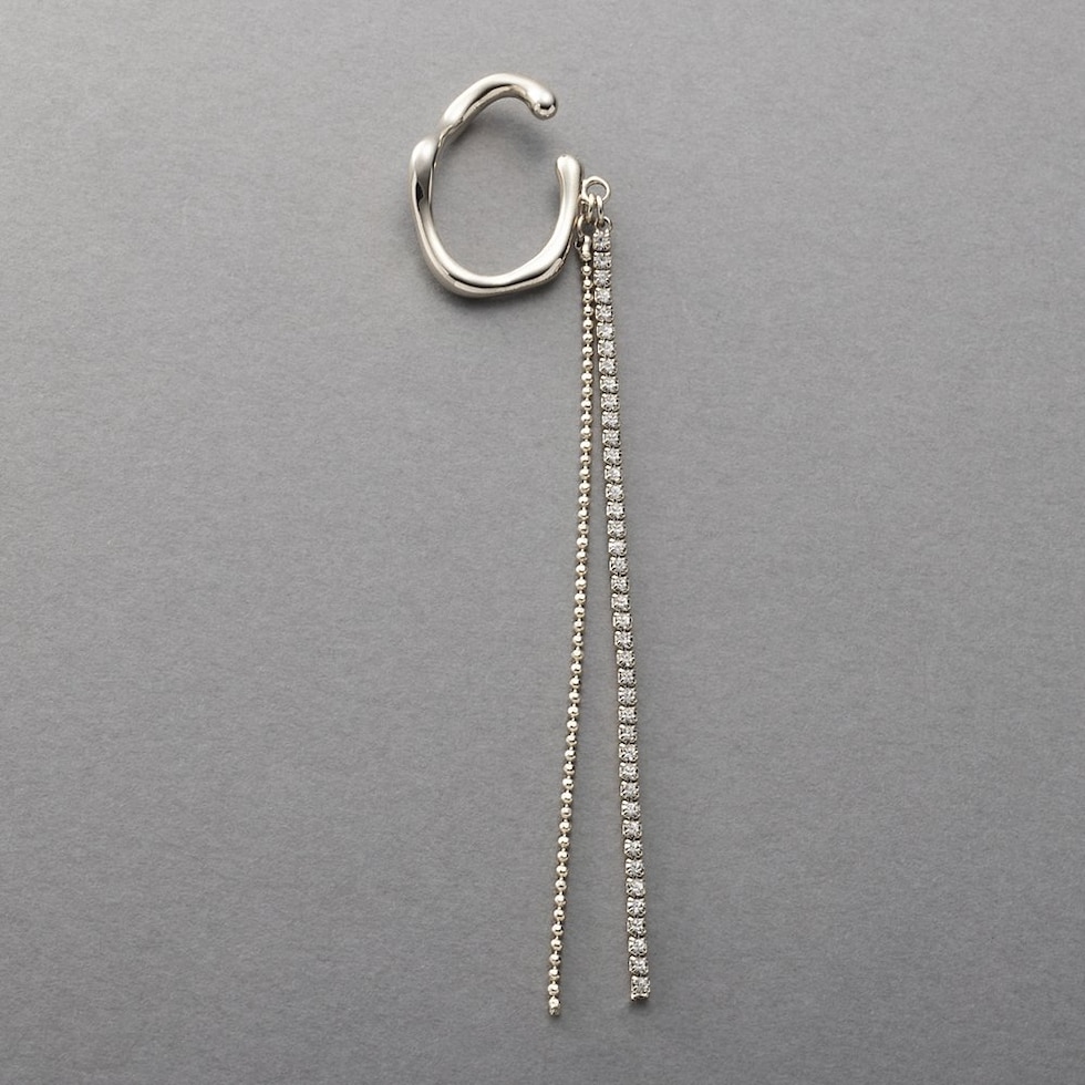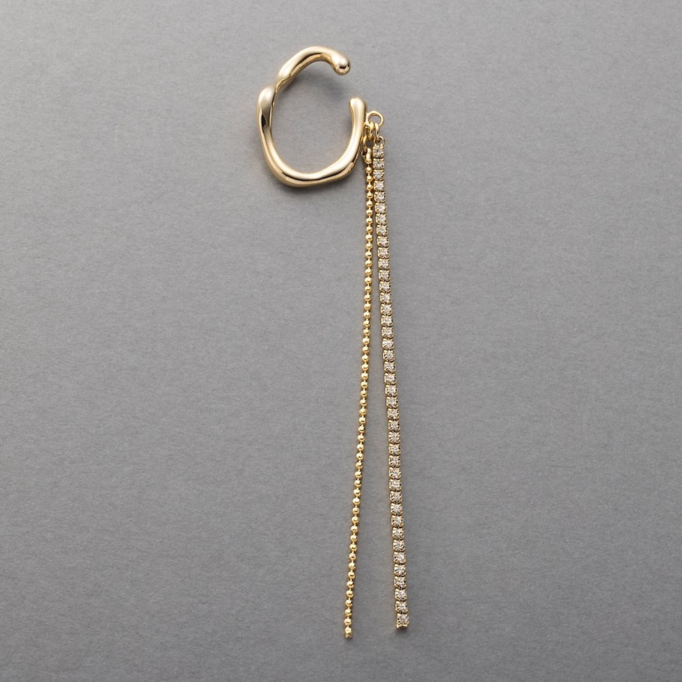 ビジュー&華奢チェーンの片耳用イヤーカフ。小粒なビジューチェーンが品よく煌めき、繊細な技ありデザインで周りと差のつくアイテム◎軽やかな揺れ感が気分まで上げてくれるひと品。