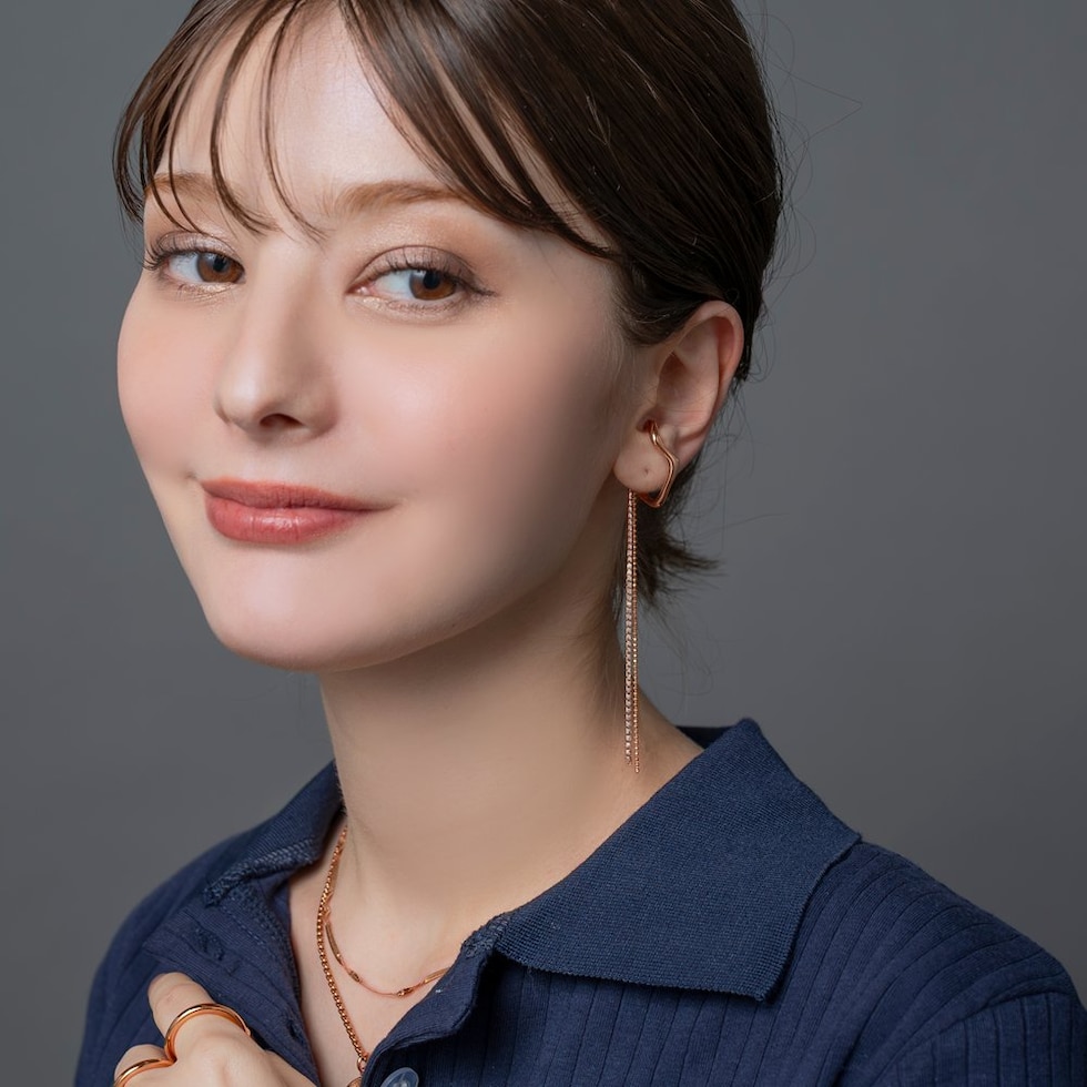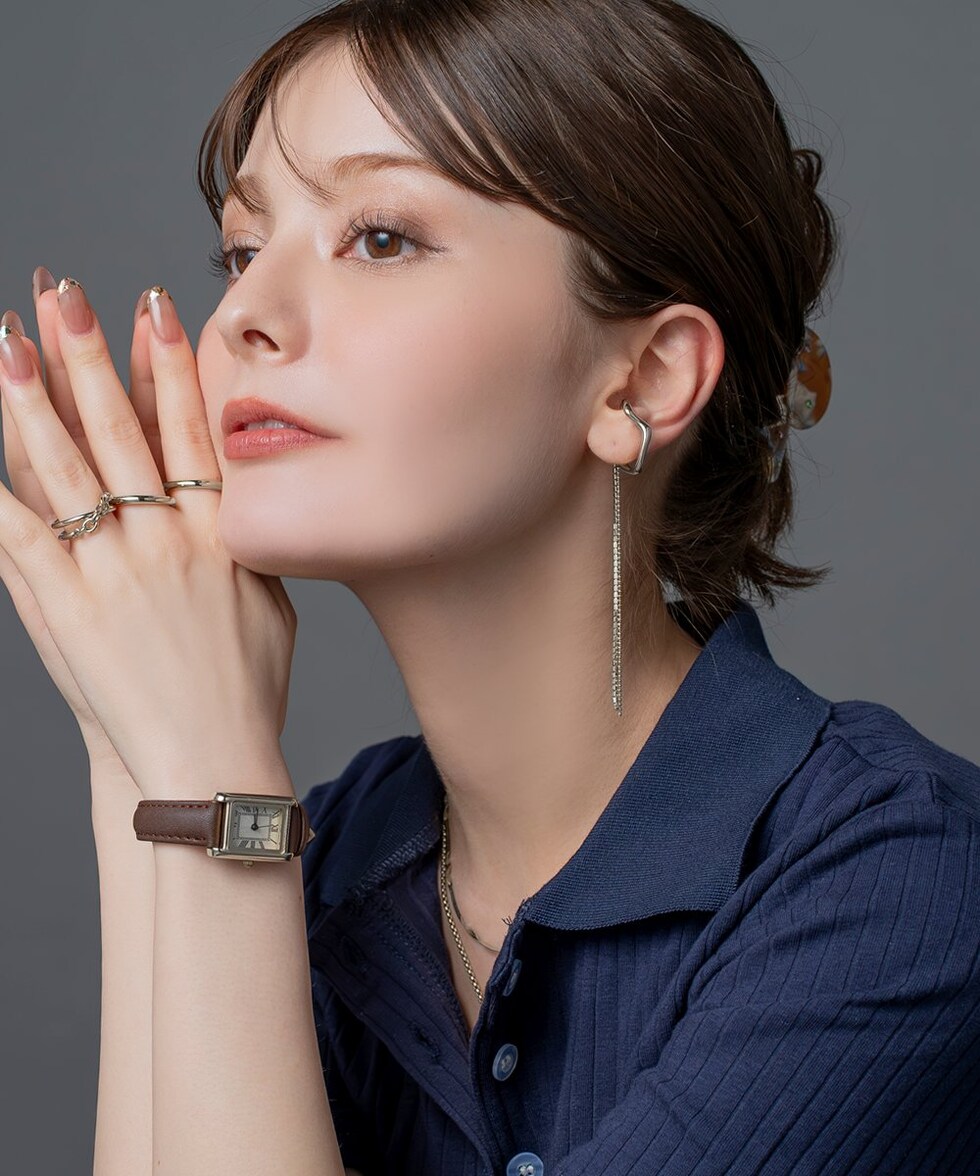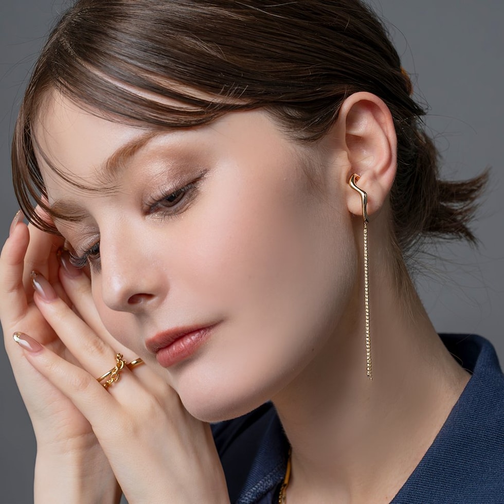 ビジュー&華奢チェーンの片耳用イヤーカフ。小粒なビジューチェーンが品よく煌めき、繊細な技ありデザインで周りと差のつくアイテム◎軽やかな揺れ感が気分まで上げてくれるひと品。