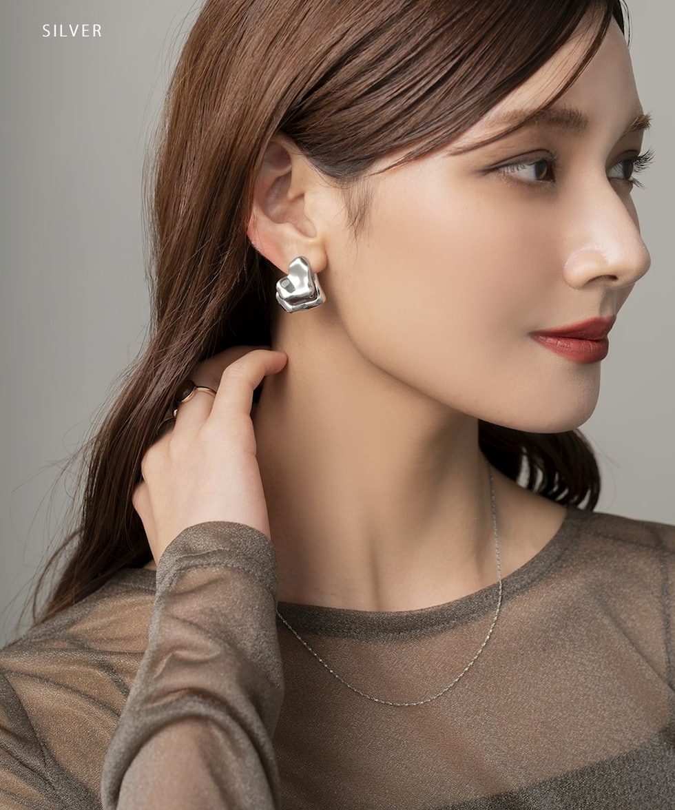 ぷっくりとした艶感のある歪みハートが可愛い◎大人でも着用しやすい甘さ控えめなデザインです。