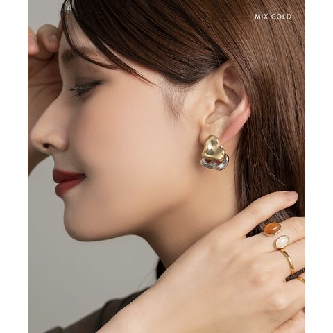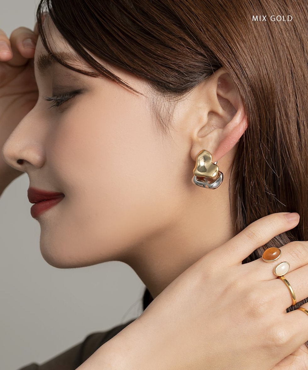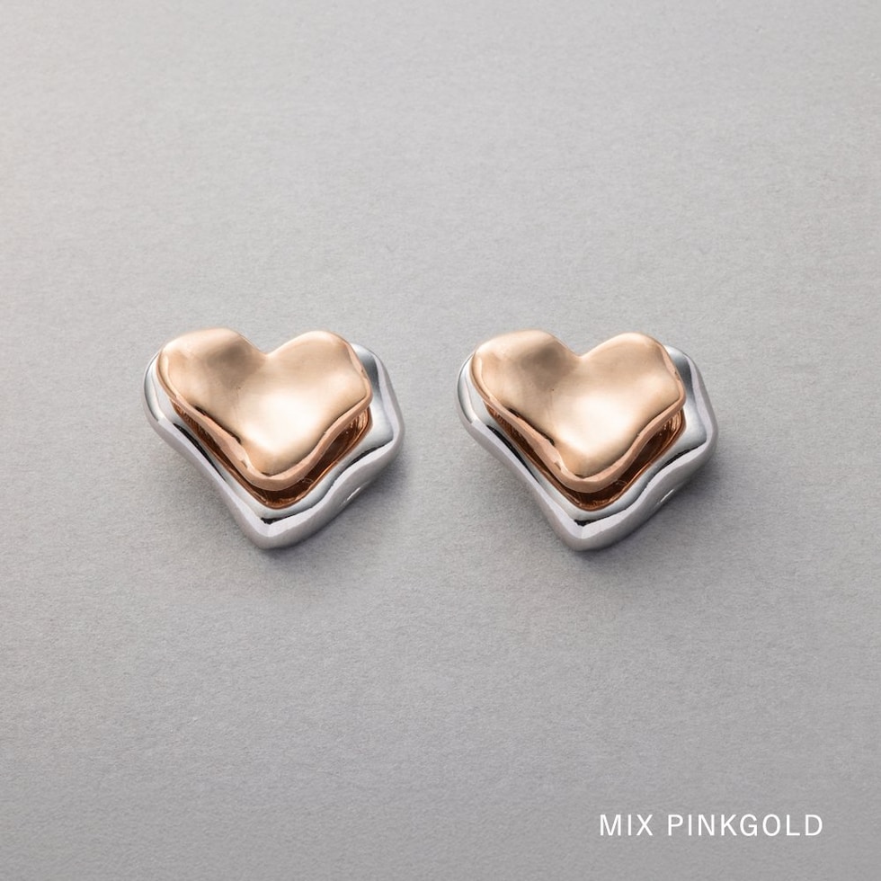 ピアス 金属アレルギー ニッケルフリー レディース バックキャッチ ハート メタル 歪み 艶 cream dot ゆうパケット [ミックスピンクゴールド_ピアス]