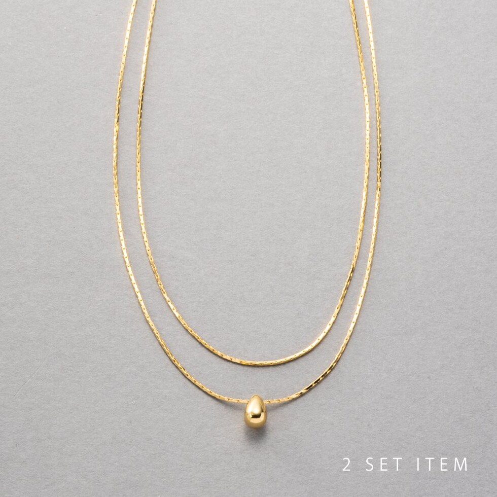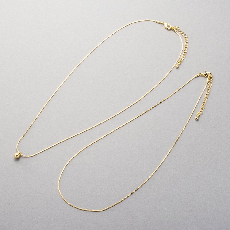 ミニマルなシルエットのドロップ&華奢チェーンの2setネックレス。重ねての着用はもちろん、それぞれ単品でもお使い頂ける嬉しい3WAY仕様◎デイリーに使える組み合わせが嬉しいひと品です。