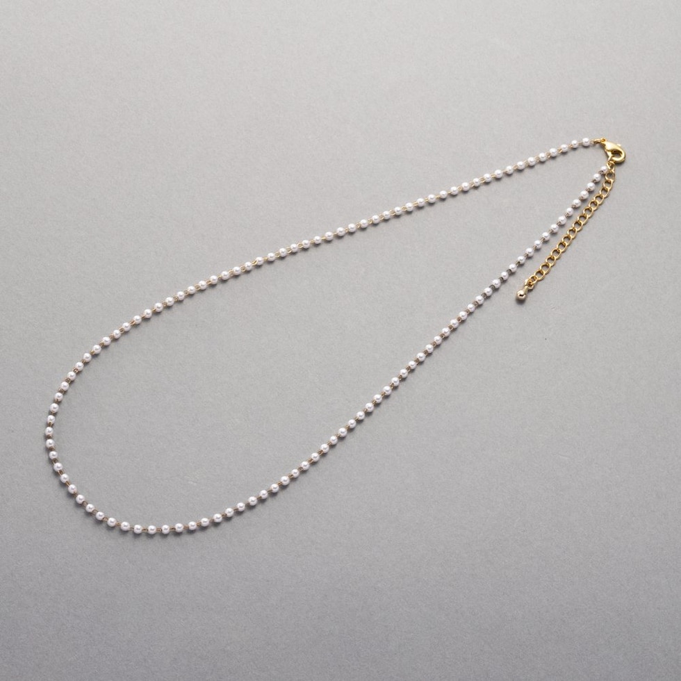 艶めく小粒パールが女性らしさを際立たせるネックレス。ノーブルな雰囲気を纏い、身につけるだけで顔周りを華やかに仕上げてくれます。単品使いはもちろん、重ね付けも楽しめる使い勝手抜群なひと品。低アレルギーのニッケルフリー素材を使用しているので、長時間の着用も安心です。