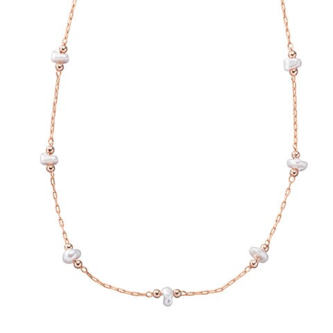 上品に艶めくニュアンスパールのネックレス。シンプルで華奢なデザインがデコルテを品よく大人な雰囲気に仕上げてくれます。単品使いはもちろん、重ね付けも楽しめる使い勝手抜群のひと品。低アレルギーのニッケルフリー素材を使用しているので、長時間の着用も安心です。