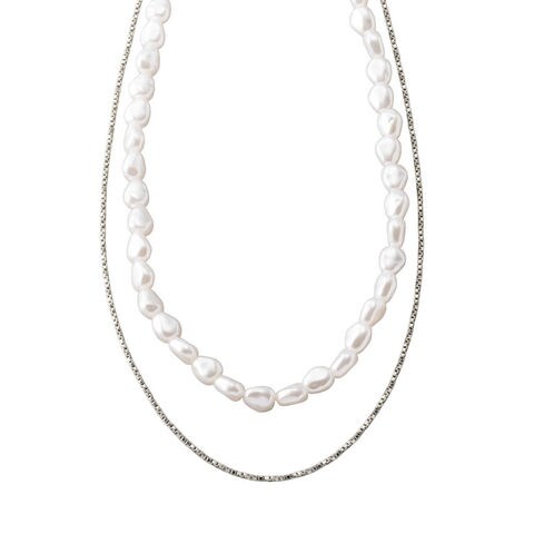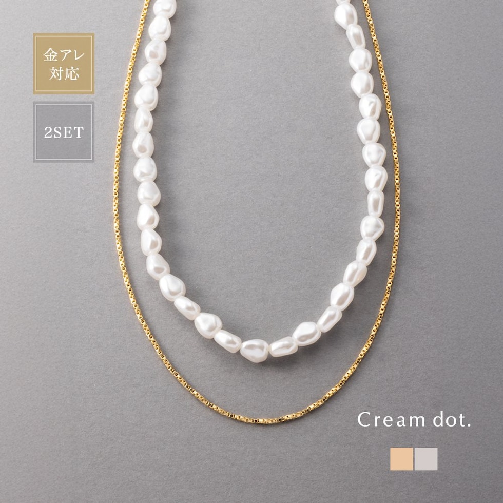 ネックレス 金属アレルギー ニッケルフリー レディース 2点セット ショート チェーン パール バロックパール風 ベネチアンチェーン 3WAY cream dot ゆうパケット [シルバー_2点セット]