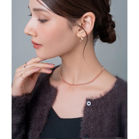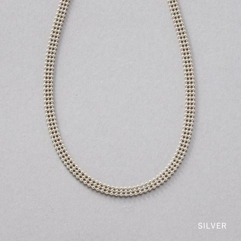 小粒なメタルボールが、メッシュのような軽やかな雰囲気に。しなやかに首元にフィットして、コーデを印象的に引き立てます。
