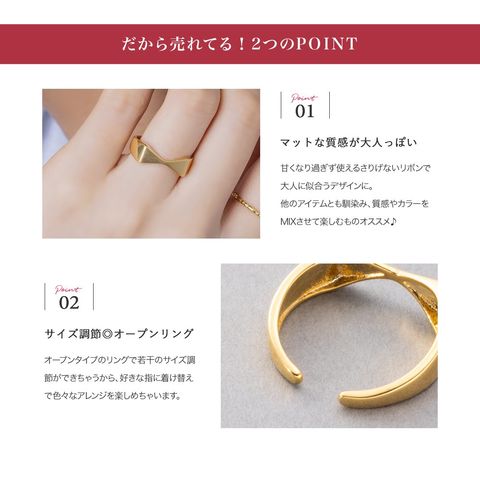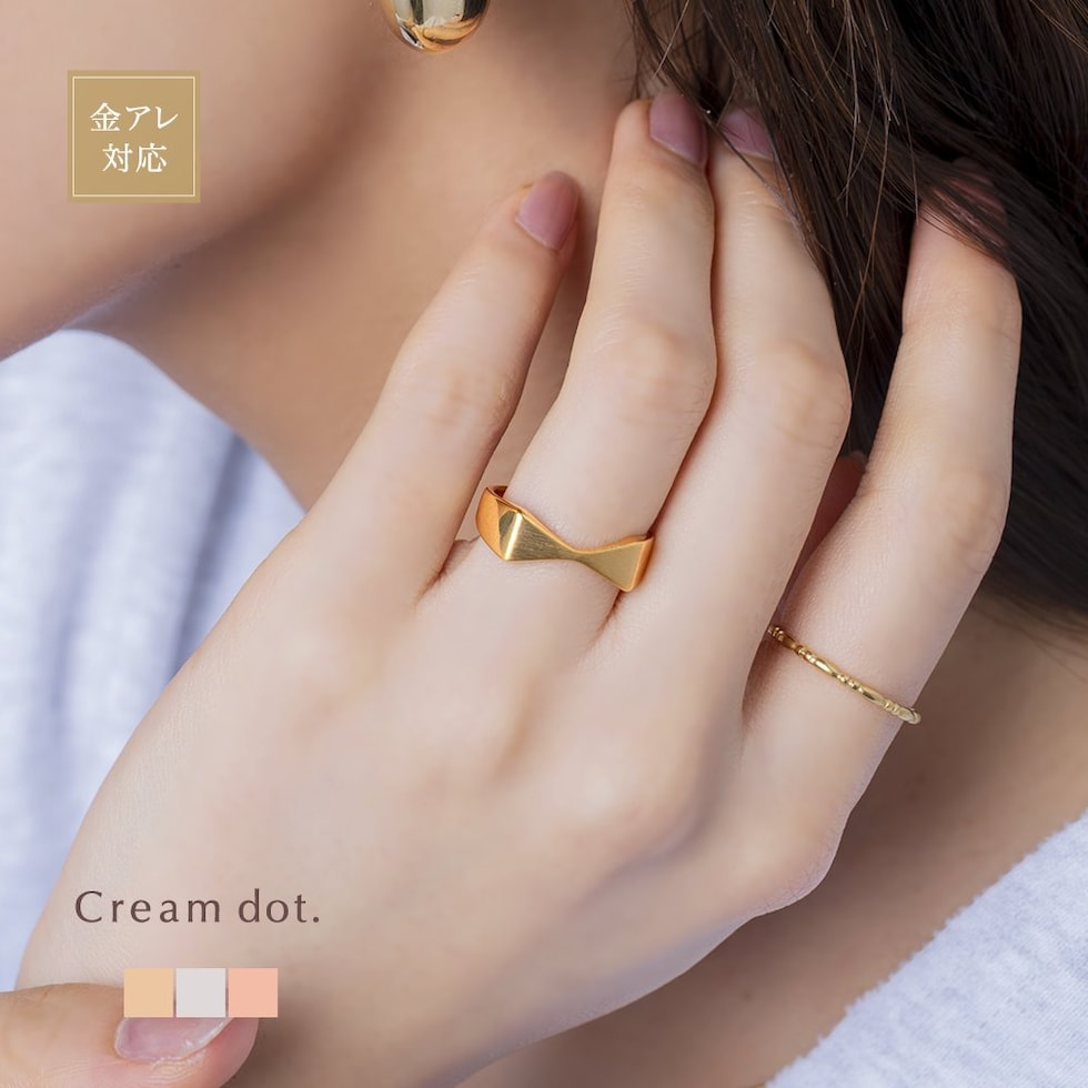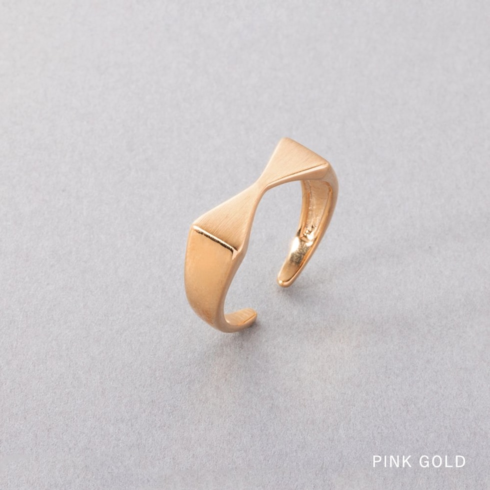 リング 指輪 金属アレルギー ニッケルフリー レディース オープンリング リボン メタル マット ヘアライン加工 艶 微調整可能 cream dot ゆうパケット [ピンクゴールド_フリーサイズ]
