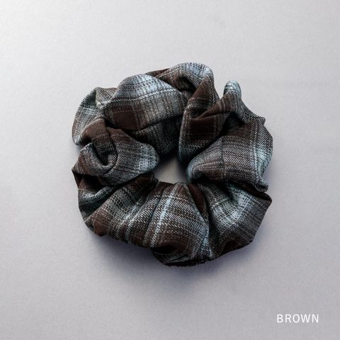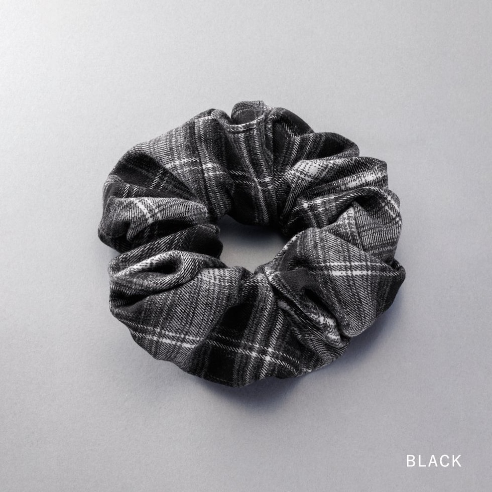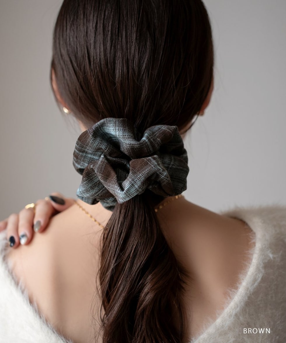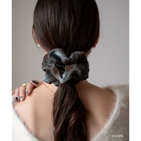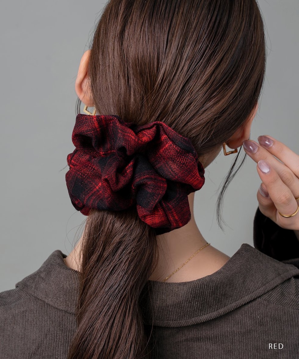 暖かみのあるフランネル風生地のチェック柄シュシュ。ボリューミーなシルエットと大人に似合う色合いでこなれ感を演出します。サッとアレンジにプラスするだけで、コーデを今っぽく仕上げてくれるアイテムです。
