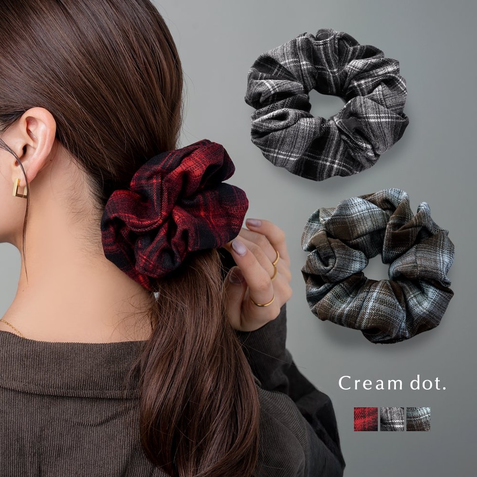 ヘアアクセサリー レディース シュシュ チェック柄 フランネル風 ボリューム 大きめ ヘアゴム ヘアアクセ ヘアアレンジ 簡単 まとめ髪 髪留め ブラウン cream dot ゆうパケット [レッド_ワンサイズ]