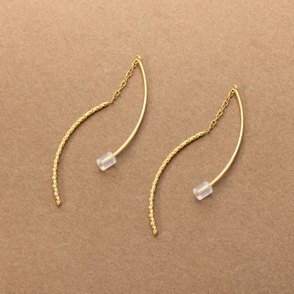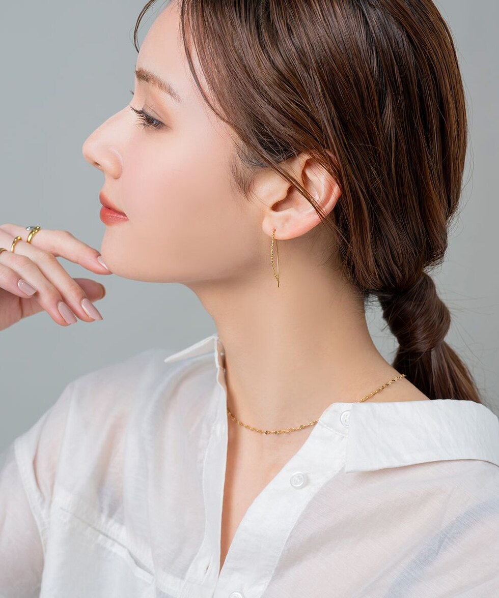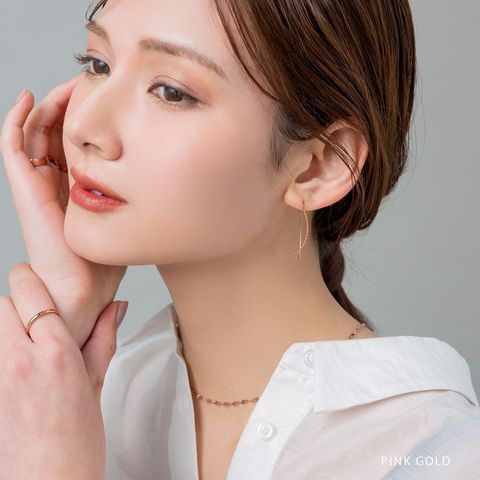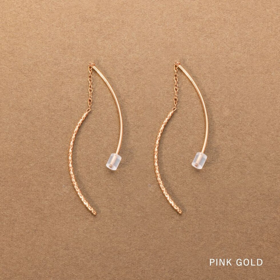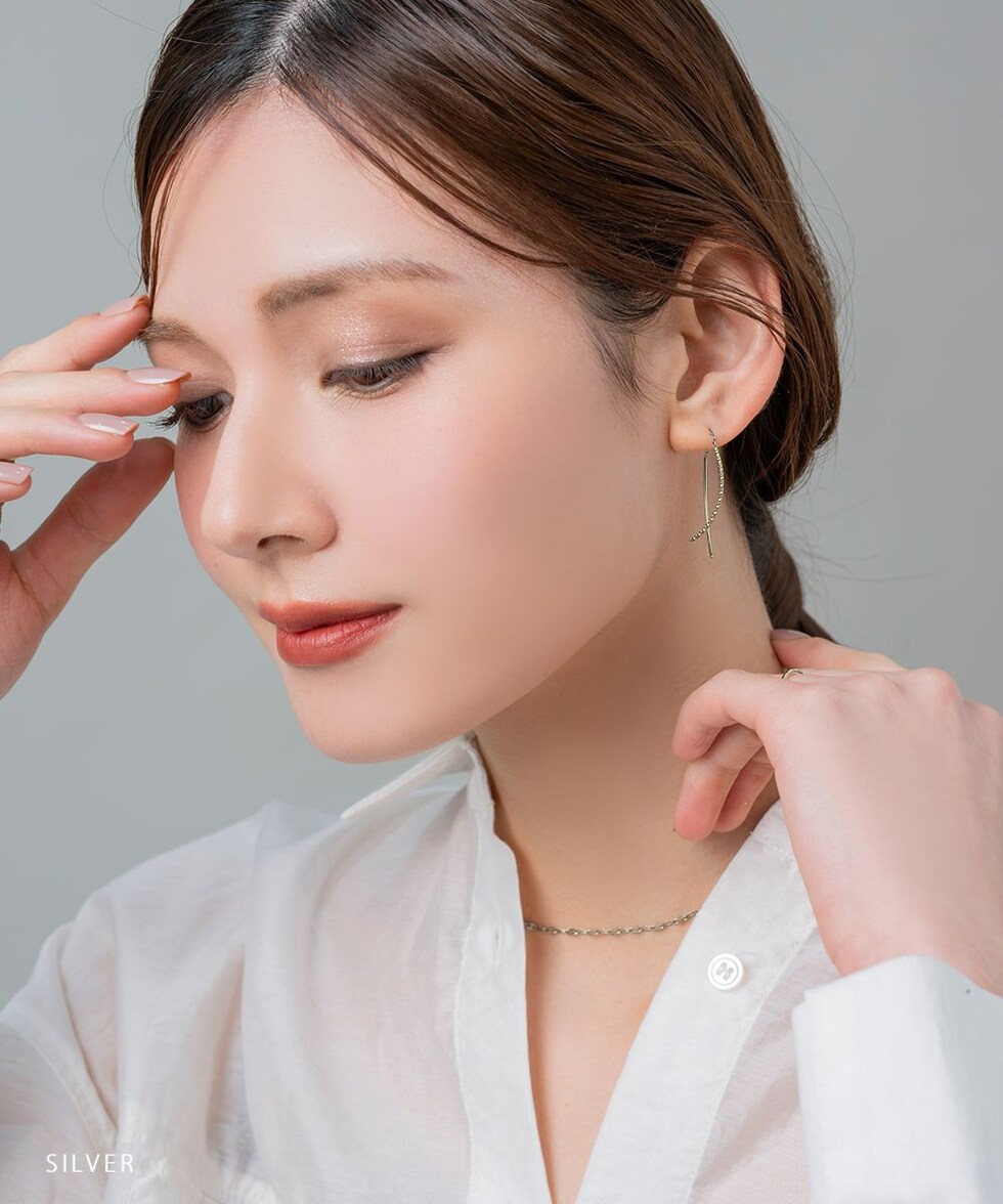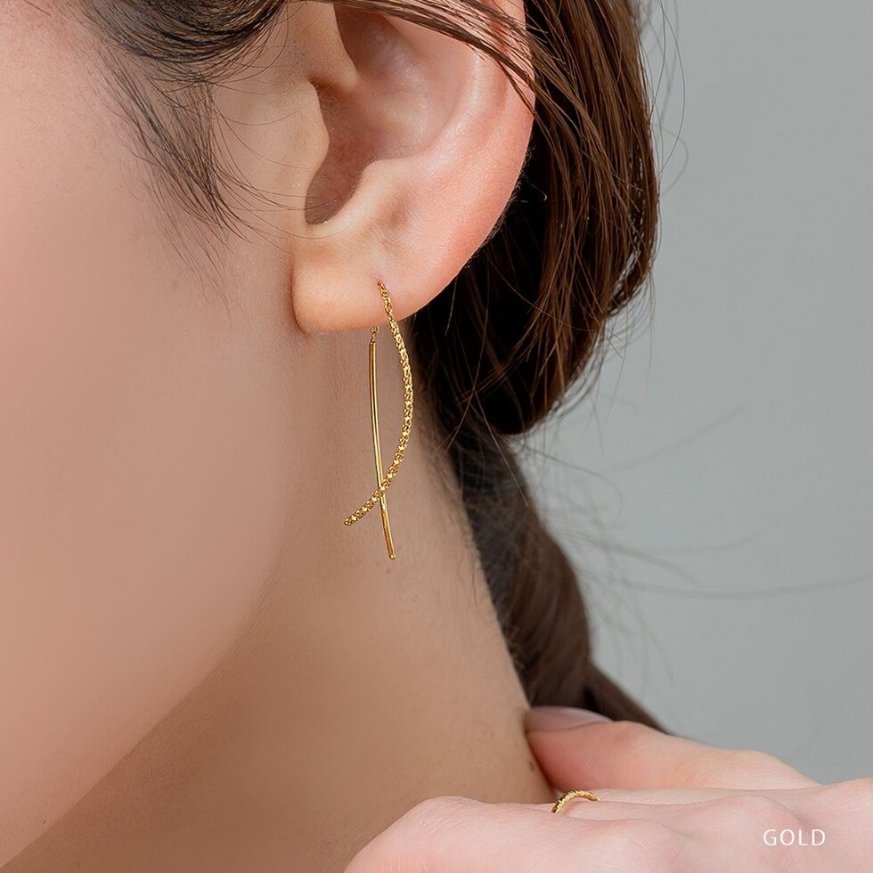 揺れるたびに耳下でクロスする人気のデザイン。顔周りをパッと明るく印象付けてくれるアイテムです♪