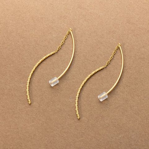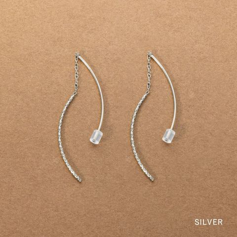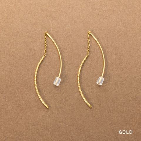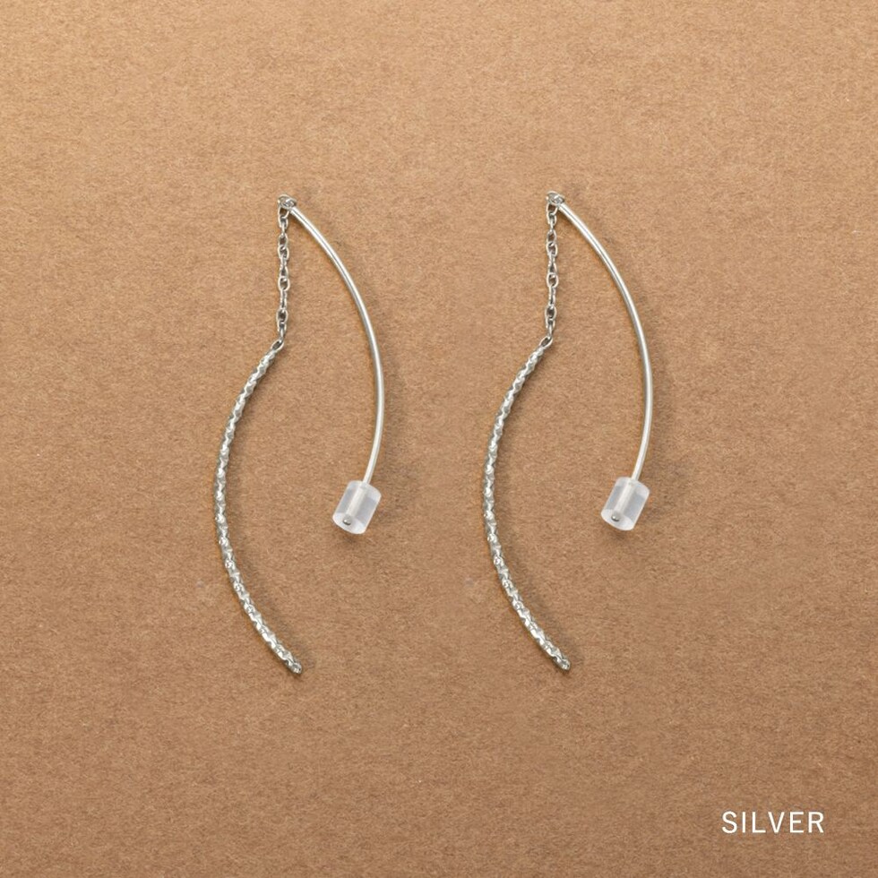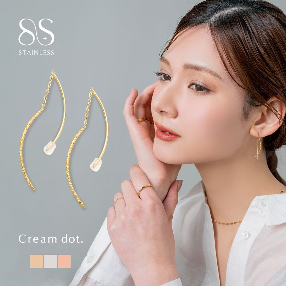 ピアス ステンレス 金属アレルギー サージカルステンレス レディース 金属アレルギー対応 つけっぱなし アメリカン カーブ メタルバー 凹凸 揺れる ミディアム チェーン cream dot ゆうパケット [シルバー_ピアス]