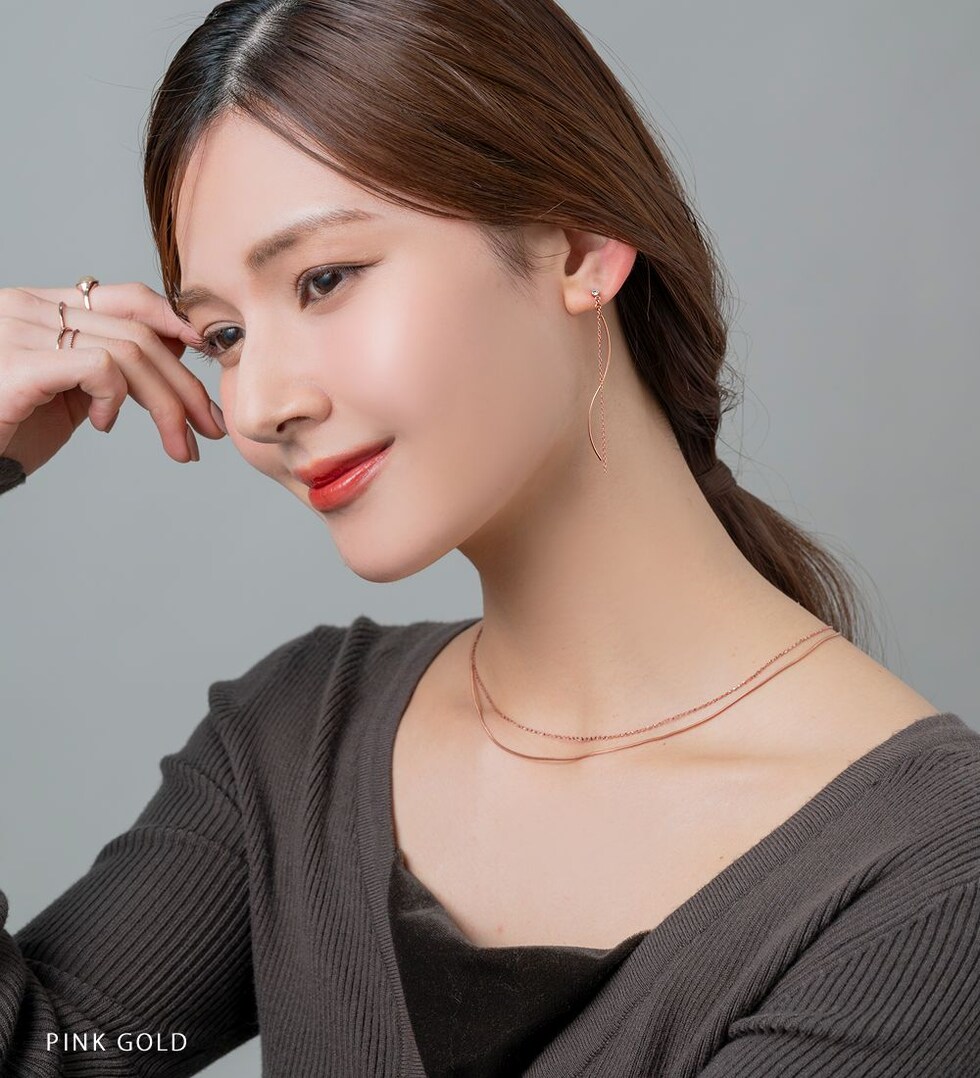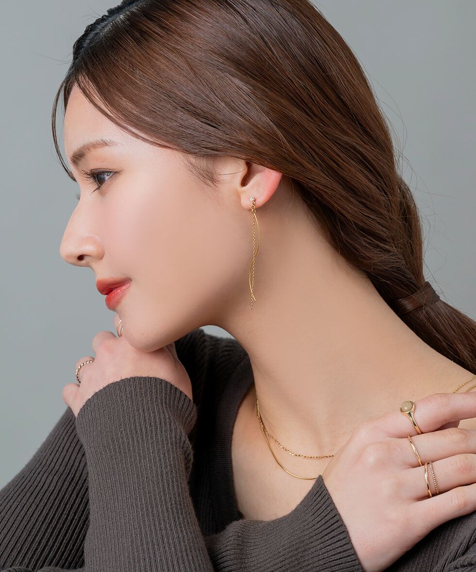 耳元で揺れるたびにウェーブとチェーンがクロスする動きのあるデザイン。まとめ髪とも相性の良い絶妙な長さも高point♪