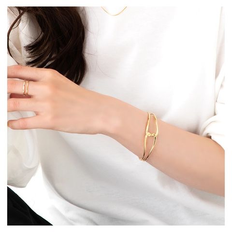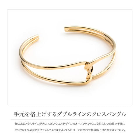艶のあるメタルラインが大人っぽいクロスデザインのオープンバングル。