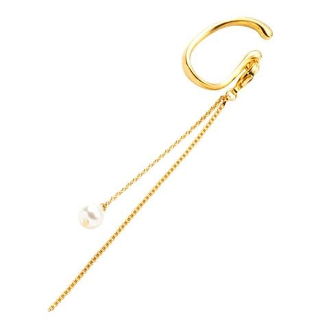 イヤーカフ 金属アレルギー ニッケルフリー レディース イヤーカフ 2way 取り外し可能 イヤカフ 片耳用 ロング チェーン 揺れる パール メタルボール cream dot ゆうパケット [A:ゴールド_ワンサイズ]