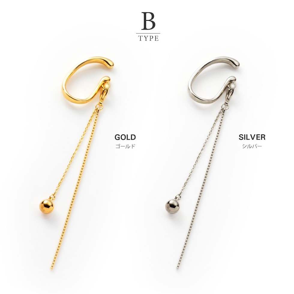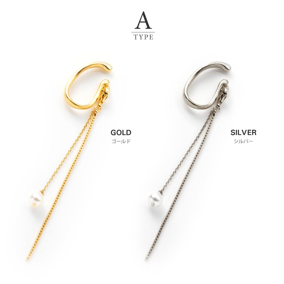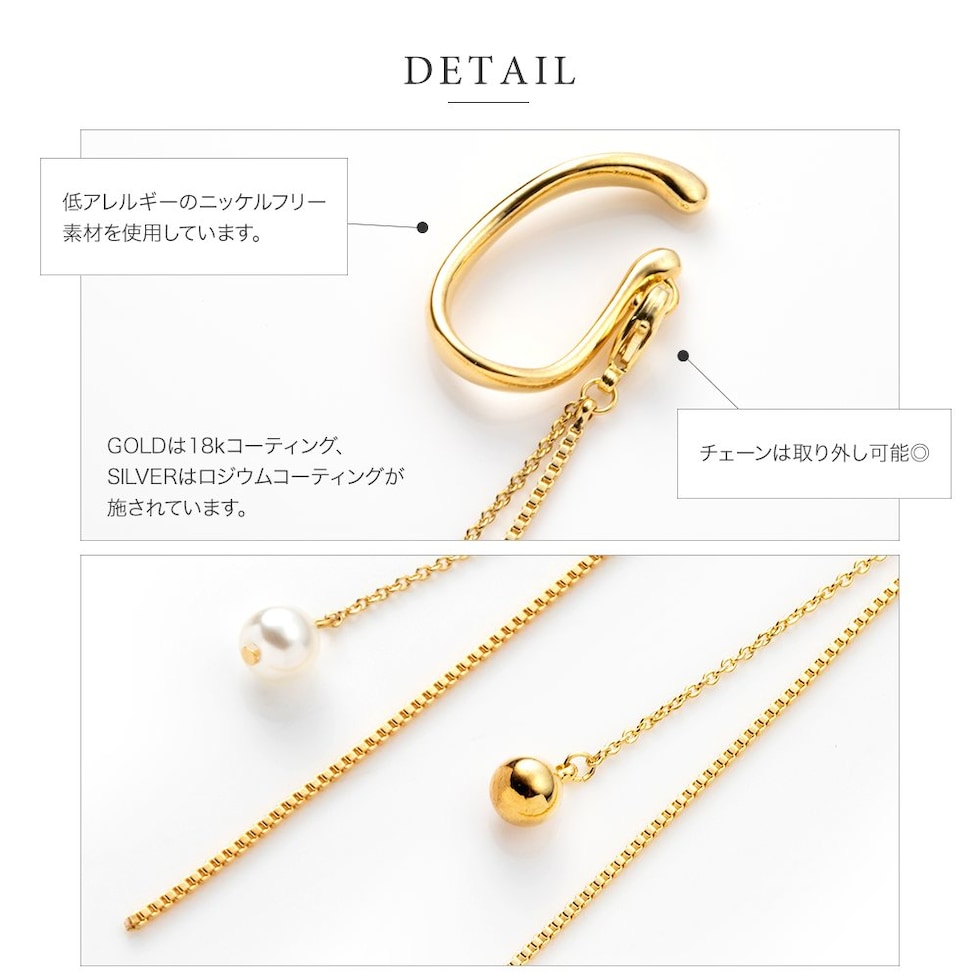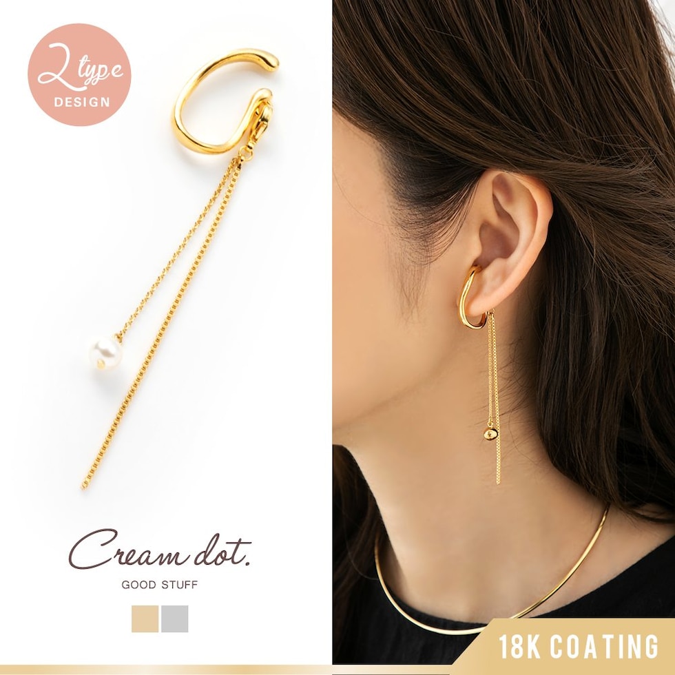 イヤーカフ 金属アレルギー ニッケルフリー レディース イヤーカフ 2way 取り外し可能 イヤカフ 片耳用 ロング チェーン 揺れる パール メタルボール cream dot ゆうパケット [A:シルバー_ワンサイズ]