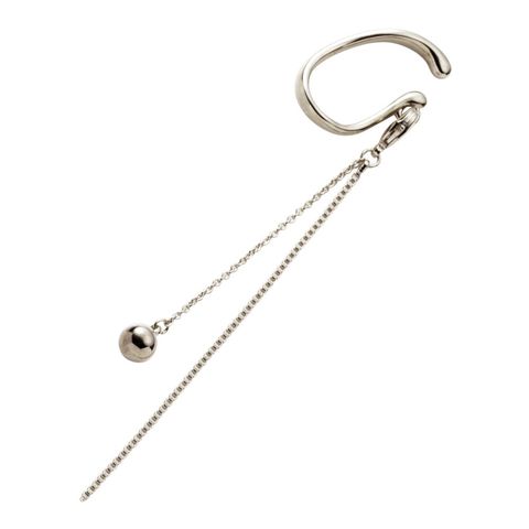 2種類チェーンと一粒パール/メタルボールを組み合わせた片耳用ロングイヤーカフ。