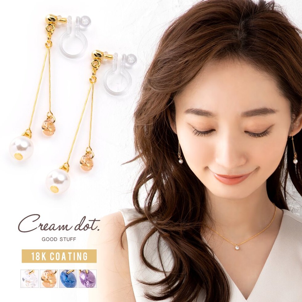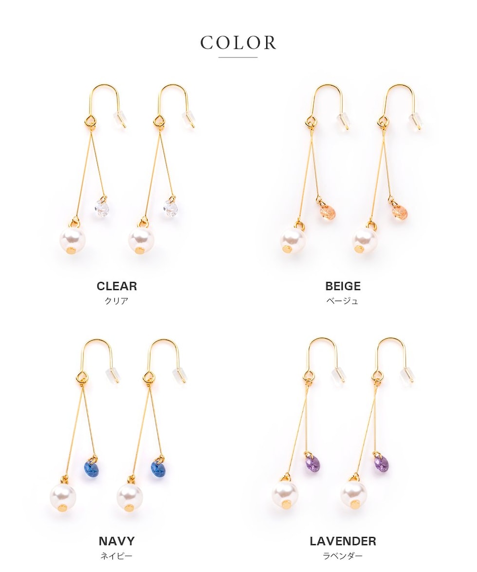 ピアス イヤリング 金属アレルギー ニッケルフリー レディース 揺れる ビジュー パール バー ラベンダー cream dot ゆうパケット [クリア_ピアス]