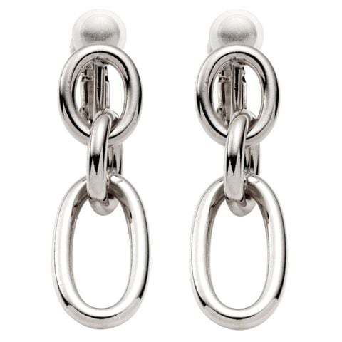 オーバルな3連チェーンが煌めくピアス/イヤリング。