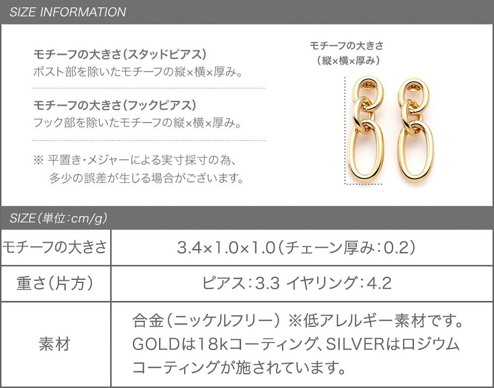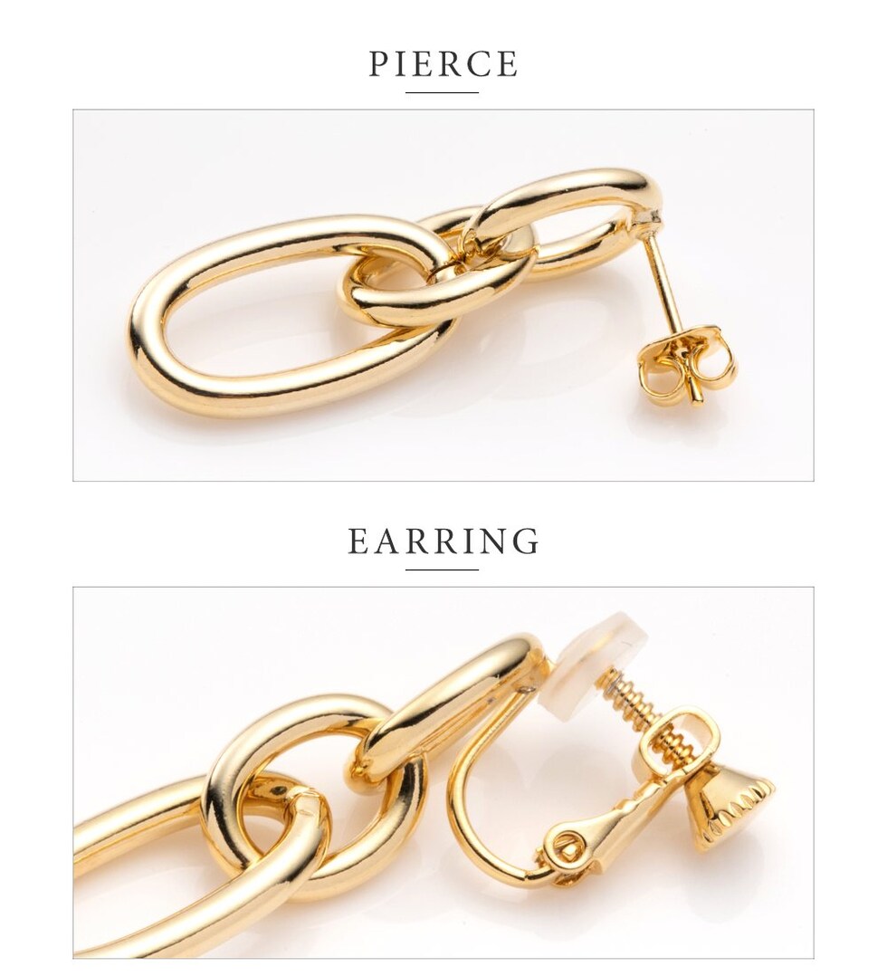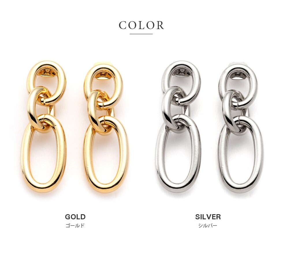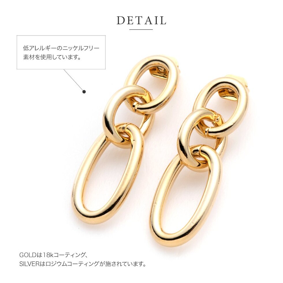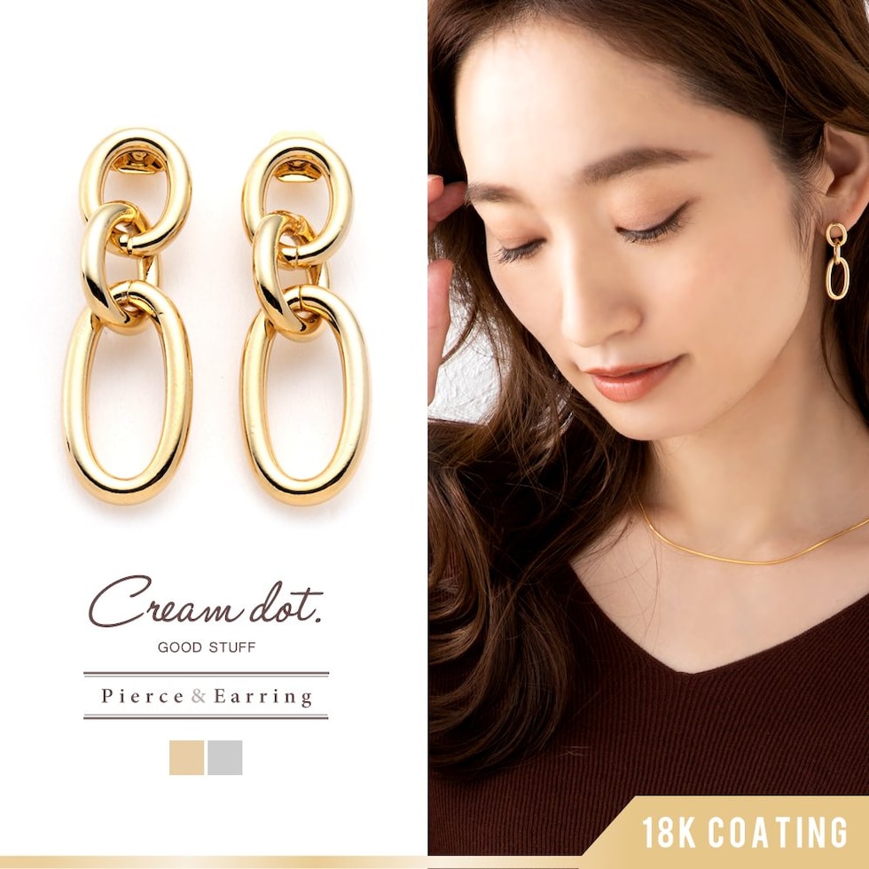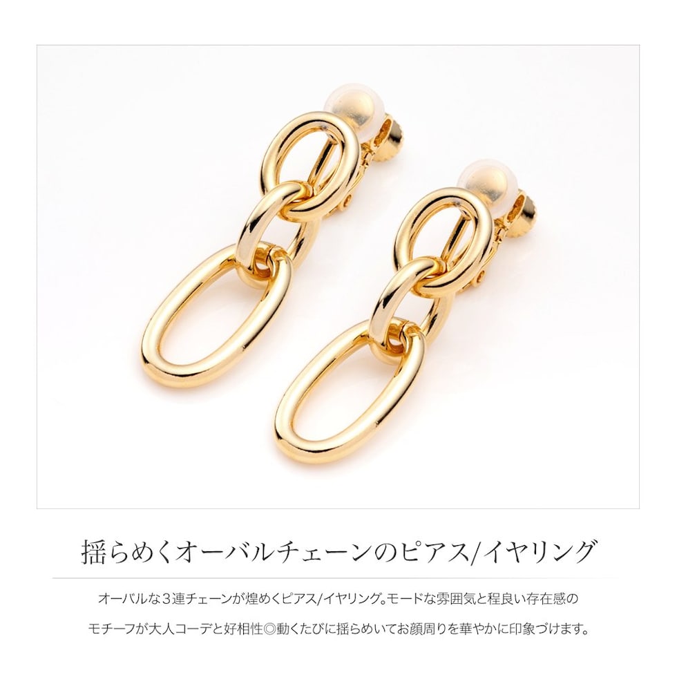 ピアス イヤリング 金属アレルギー ニッケルフリー レディース ネジ式 シリコンカバー 揺れる オーバルチェーン 3連 cream dot ゆうパケット [ゴールド_ピアス]