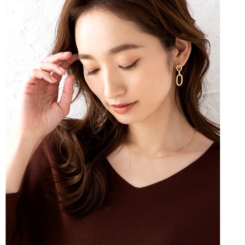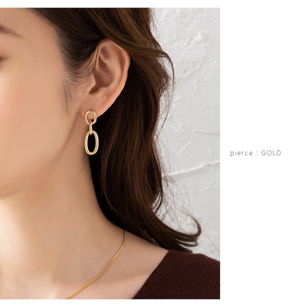 オーバルな3連チェーンが煌めくピアス/イヤリング。