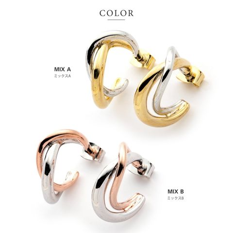 ぷっくりとしたバイカラーのラインが交わるツイストピアス。