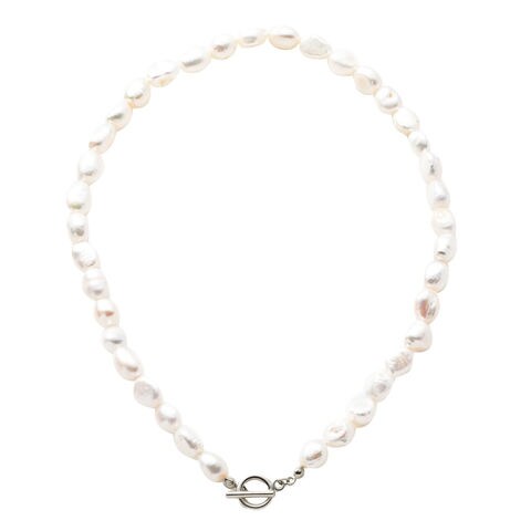 ナチュラルな輝きが大人っぽい、大粒淡水パールのマンテルネックレス。ひとつひとつ違った形でキレイめになりすぎずに、カジュアルにもオケージョンにも合わせやすい大人顔のネックレスです。