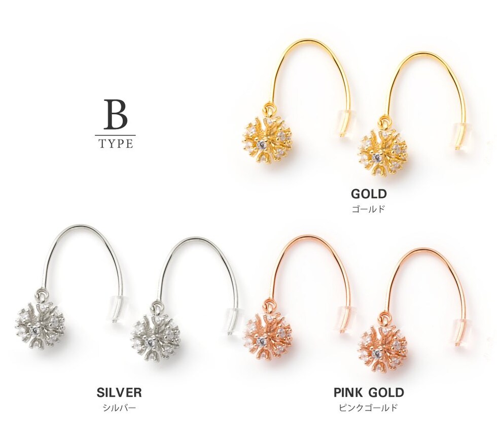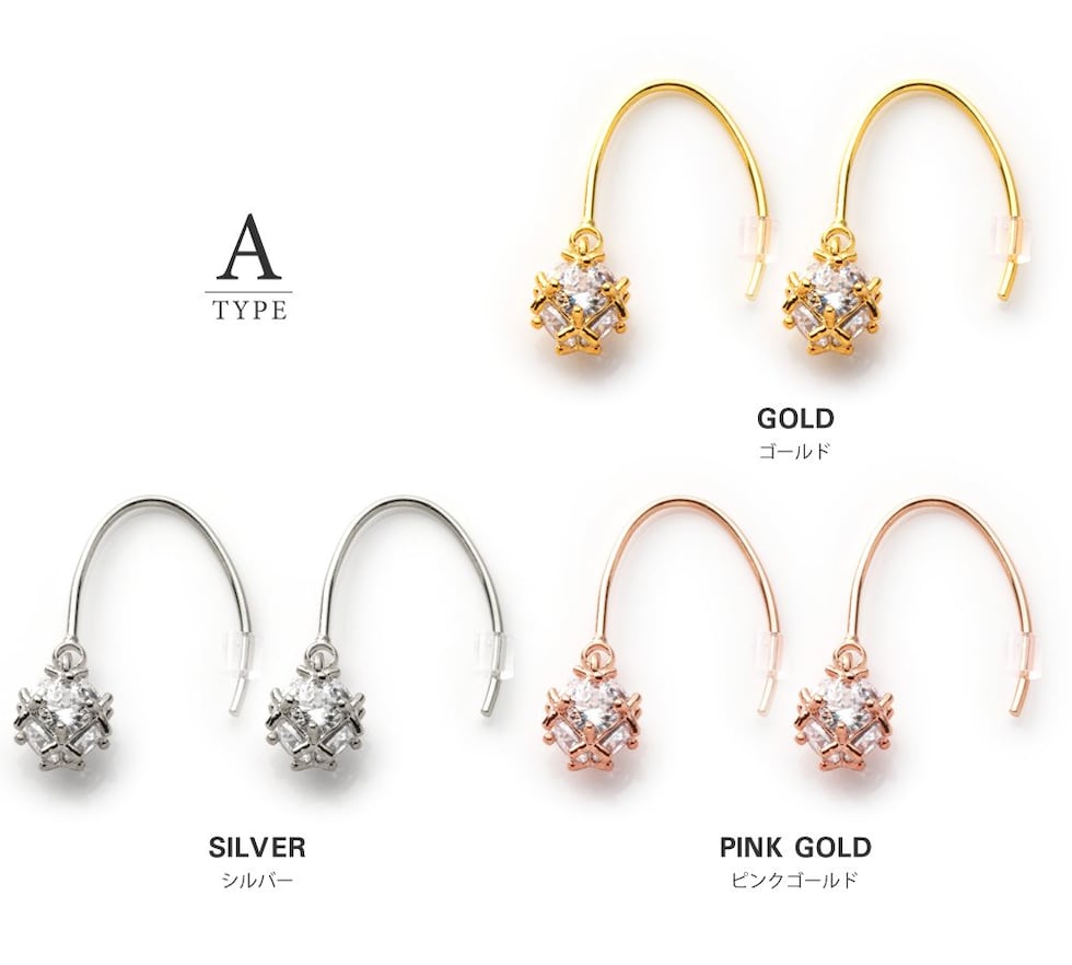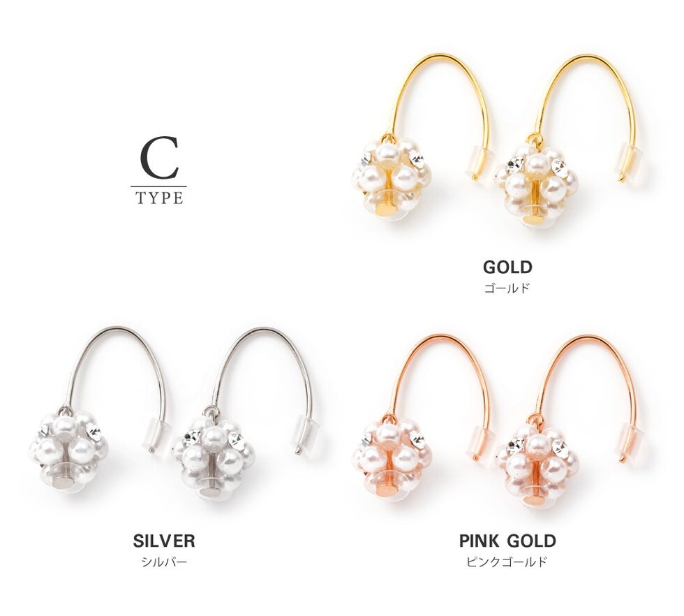 ピアス 金属アレルギー ニッケルフリー レディース 3タイプ フック 揺れる パヴェボール ビジュー パール cream dot ゆうパケット [B:ピンクゴールド_ピアス]