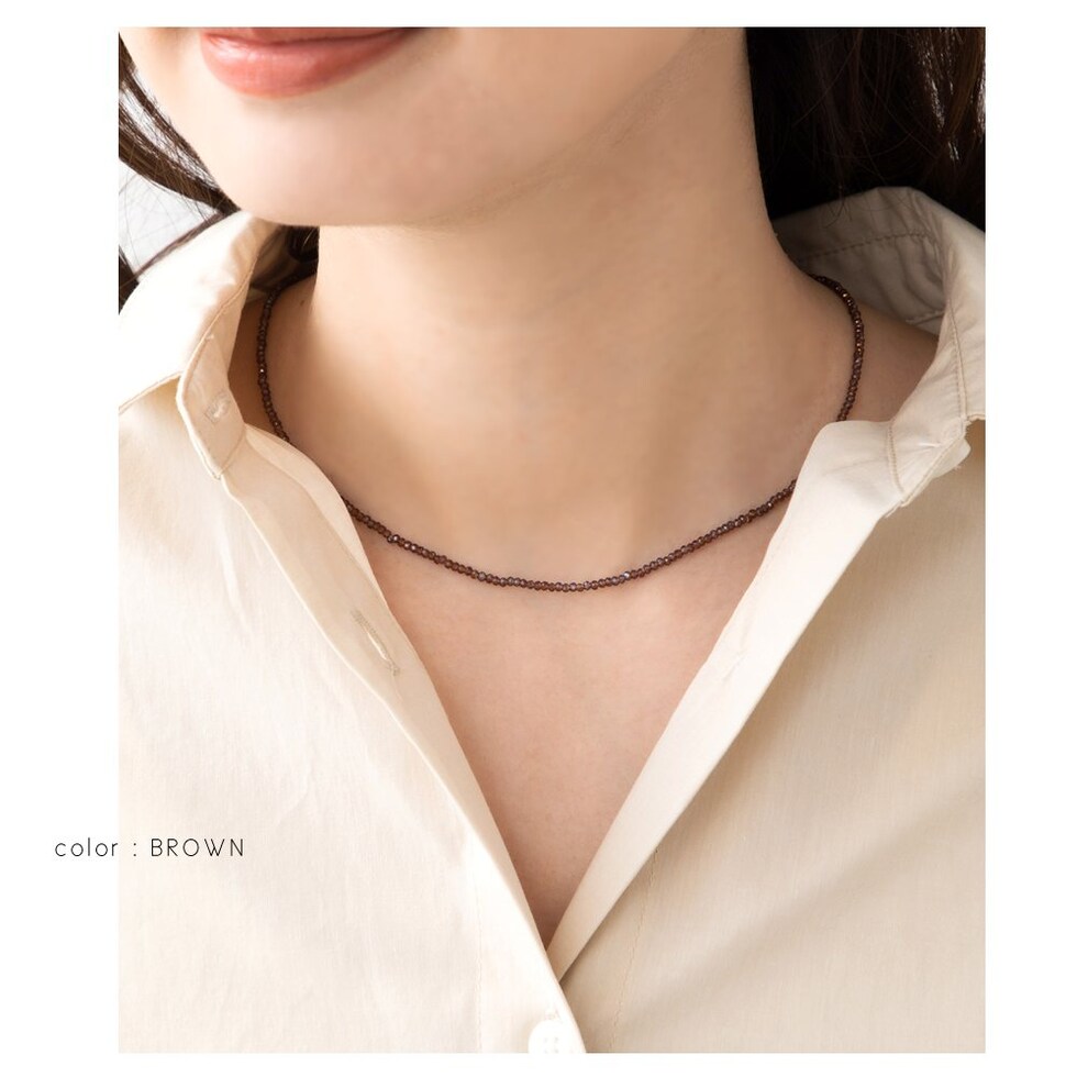ネックレス 金属アレルギー ニッケルフリー レディース ショート 多面カット ビーズチェーン グリーン cream dot ゆうパケット [ブラウン_ワンサイズ]