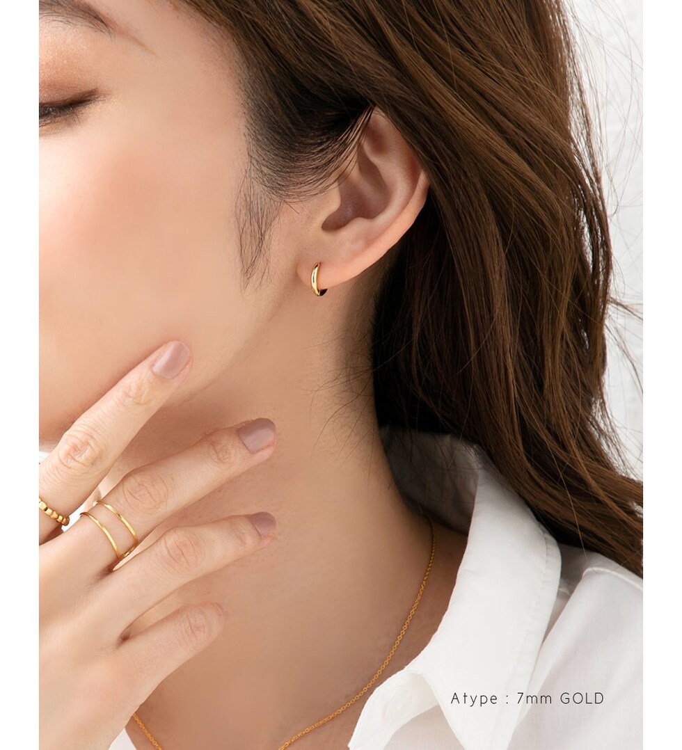 シンプルで身につけやすい0.2mm幅のフープピアス。サイズ・色・デザインが選べる豊富なバリエーションです。トレンドに左右されずに末永く使える定番ピアスは、ひとつ持っておけばデイリーに活躍間違いナシ◎