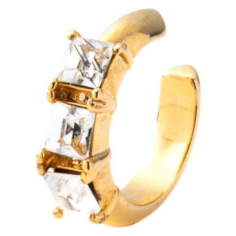 3粒のスクエアストーンが並んだおしゃれな片耳用イヤーカフ。スクエアカットを施した煌めくカラーストーンが派手過ぎずレトロな印象に◎程よいサイジングで耳元からオトナ上品にアピール。