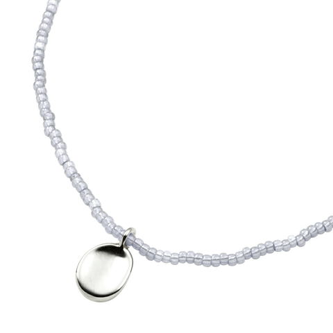 歪みの入ったメタルコインと小粒ビーズのネックレス。
