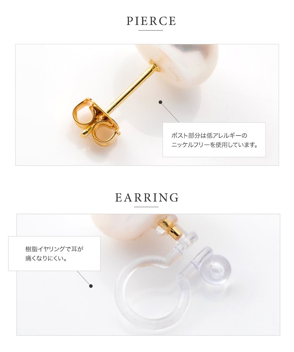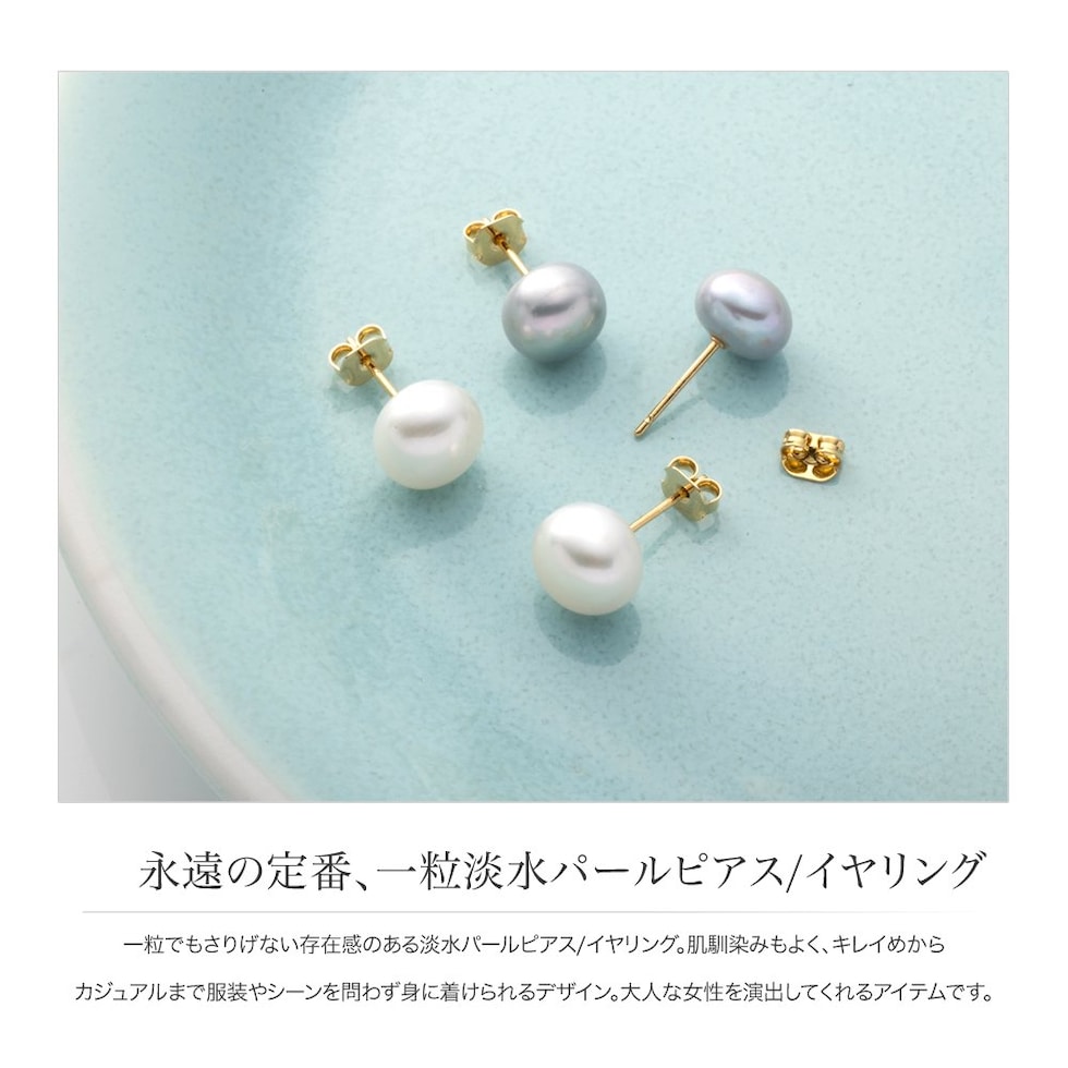 一粒でもさりげない存在感のある淡水パールピアス/イヤリング。肌馴染みもよく、キレイめからカジュアルまで服装やシーンを問わず身に着けられるデザイン。大人な女性を演出してくれるアイテムです。