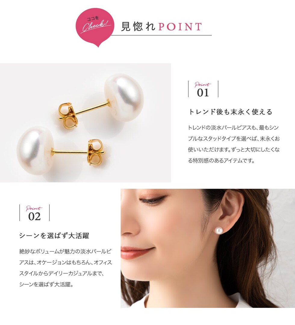 絶妙なボリュームが魅力の淡水パールピアスは、オケージョンはもちろん、オフィススタイルからデイリーカジュアルまで、シーンを選ばず大活躍。