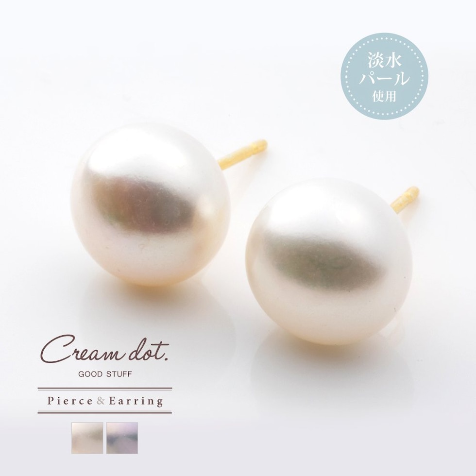 ピアス イヤリング 金属アレルギー ニッケルフリー レディース スタッド 淡水パール 一粒パール グレー cream dot ゆうパケット [ホワイト_イヤリング]