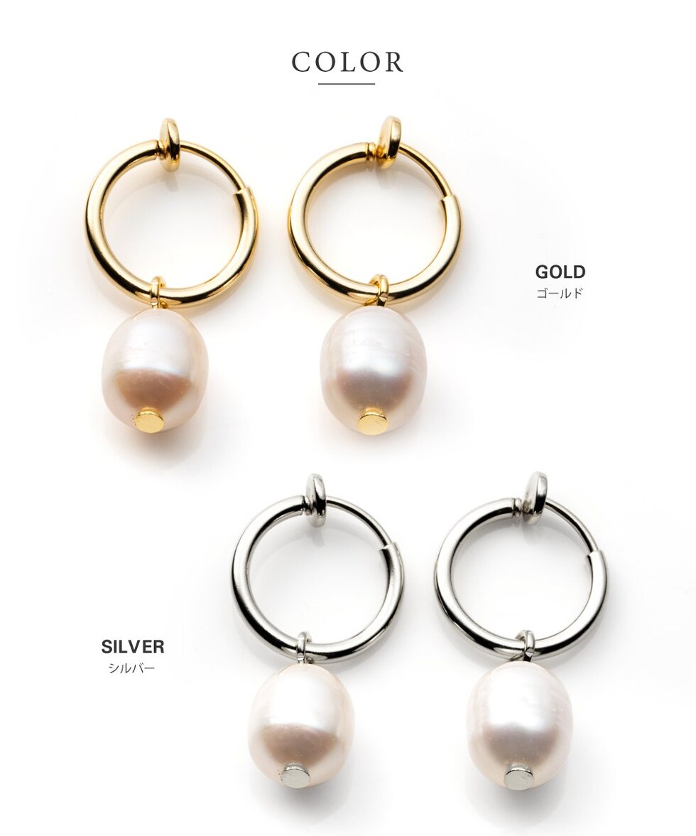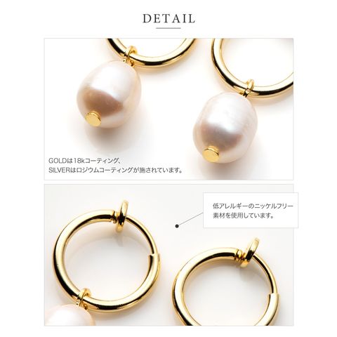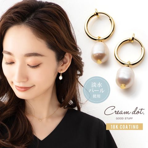 イヤリング 金属アレルギー ニッケルフリー レディース フープ 2way 取り外し 淡水パール cream dot ゆうパケット [ゴールド_イヤリング]