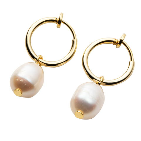 天然淡水パールの持つナチュラルで淡い艶めきが耳元で揺れるバネ式フープイヤリング。