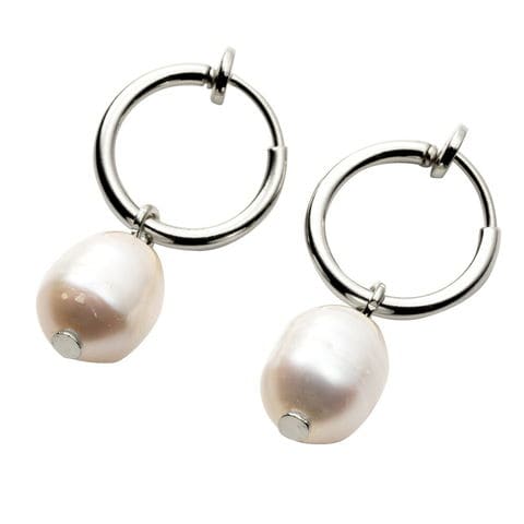 天然淡水パールの持つナチュラルで淡い艶めきが耳元で揺れるバネ式フープイヤリング。