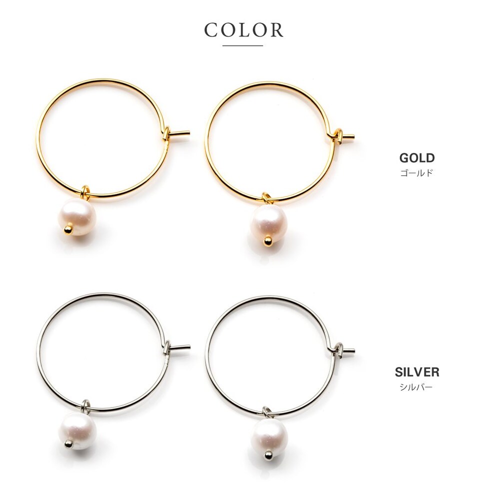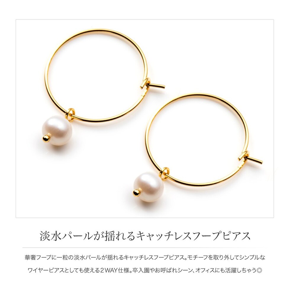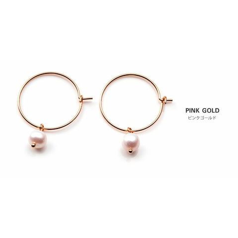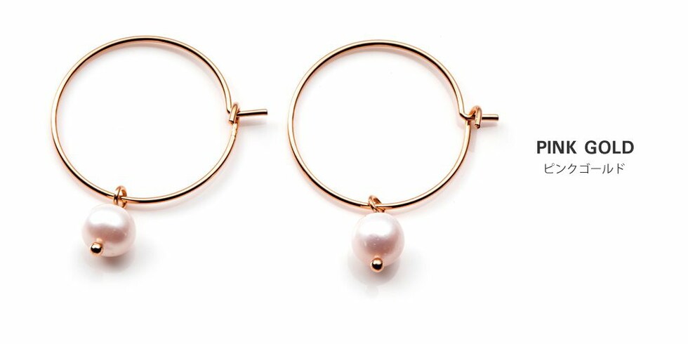 ピアス 金属アレルギー ニッケルフリー レディース フープ キャッチレス 揺れる 淡水パール 2way cream dot ゆうパケット [ピンクゴールド_ピアス]